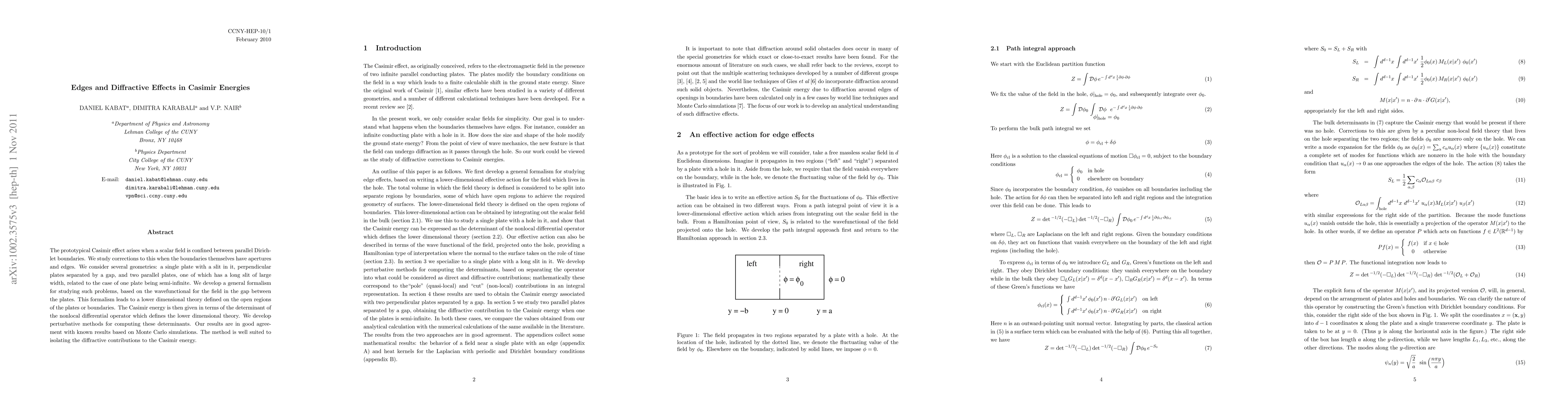 The prototypical Casimir effect arises when a scalar field is confined between parallel Dirichlet boundaries. We study corrections to this when the boundaries themselves have apertures and edges. We consider several geometries: a single plate with a slit in it, perpendicular plates separated by a gap, and two parallel plates, one of which has a long slit of large width, related to the case of one plate being semi-infinite. We develop a general formalism for studying such problems, based on the wavefunctional for the field in the gap between the plates. This formalism leads to a lower dimensional theory defined on the open regions of the plates or boundaries. The Casimir energy is then given in terms of the determinant of the nonlocal differential operator which defines the lower dimensional theory. We develop perturbative methods for computing these determinants. Our results are in good agreement with known results based on Monte Carlo simulations. The method is well suited to isolating the diffractive contributions to the Casimir energy.