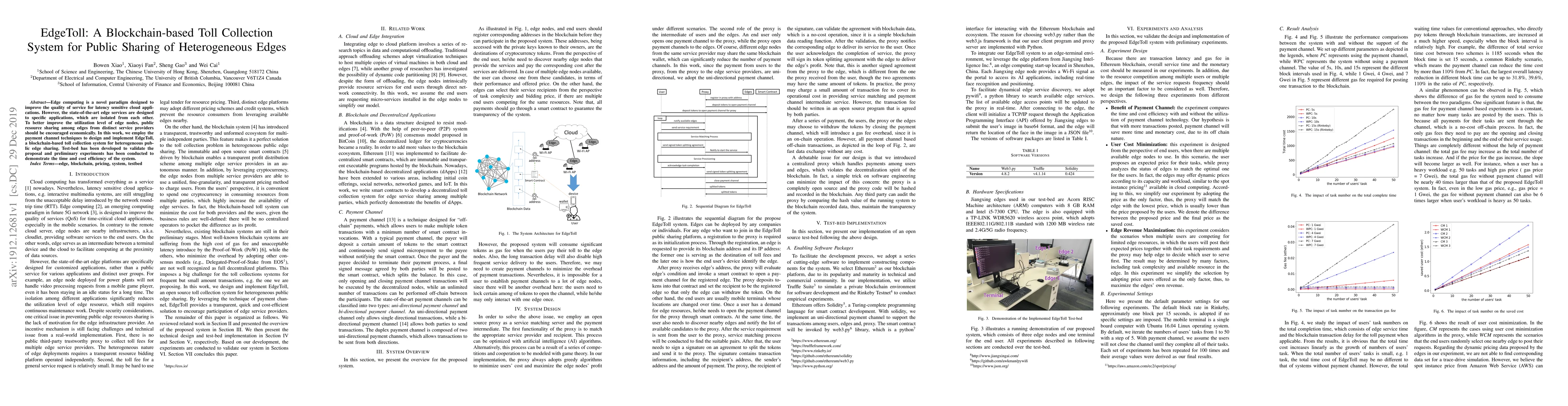 EdgeToll is a blockchain-based system that enables public sharing of edge nodes among distinct service providers to improve utilization levels economically. It demonstrates time and cost efficiency through preliminary experiments.