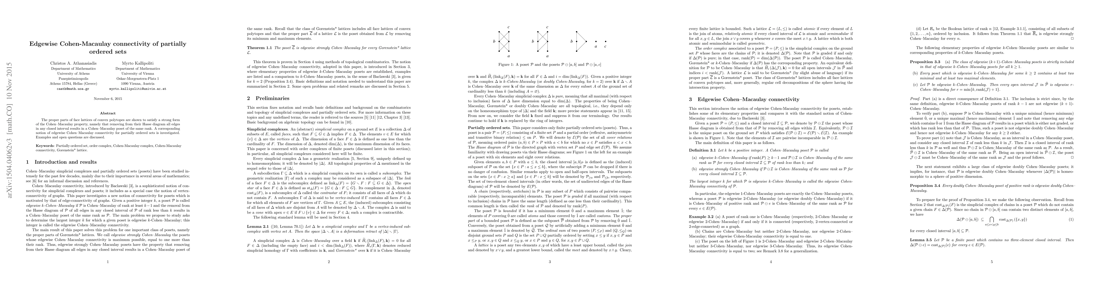 The proper parts of face lattices of convex polytopes are shown to satisfy a strong form of the Cohen--Macaulay property, namely that removing from their Hasse diagram all edges in any closed interval results in a Cohen--Macaulay poset of the same rank. A corresponding notion of edgewise Cohen--Macaulay connectivity for partially ordered sets is investigated. Examples and open questions are discussed.