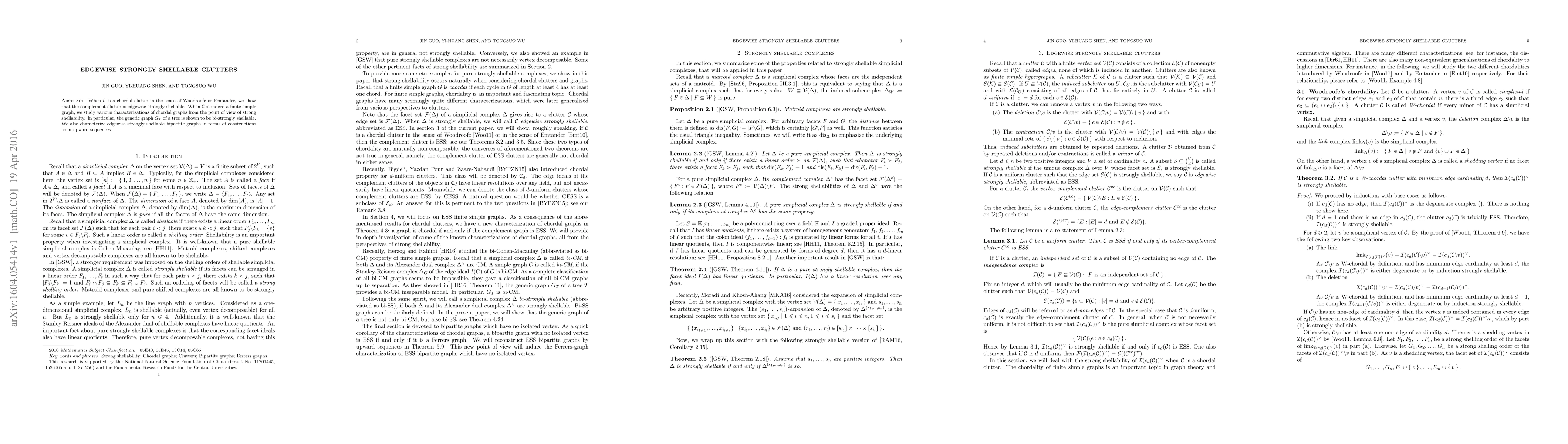 When $\mathcal{C}$ is a chordal clutter in the sense of Woodroofe or Emtander, we show that the complement clutter is edgewise strongly shellable. When $\mathcal{C}$ is indeed a finite simple graph, we study various characterizations of chordal graphs from the point of view of strong shellability. In particular, the generic graph $G_T$ of a tree is shown to be bi-strongly shellable. We also characterize edgewise strongly shellable bipartite graphs in terms of constructions from upward sequences. \end{abstract}