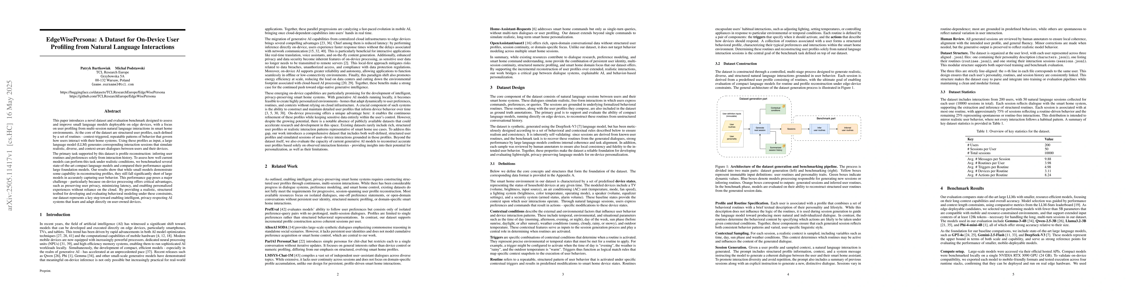 The creation of EdgeWisePersona, a novel dataset for on-device user profiling from natural language interactions, along with benchmarking compact language models against large foundation models.