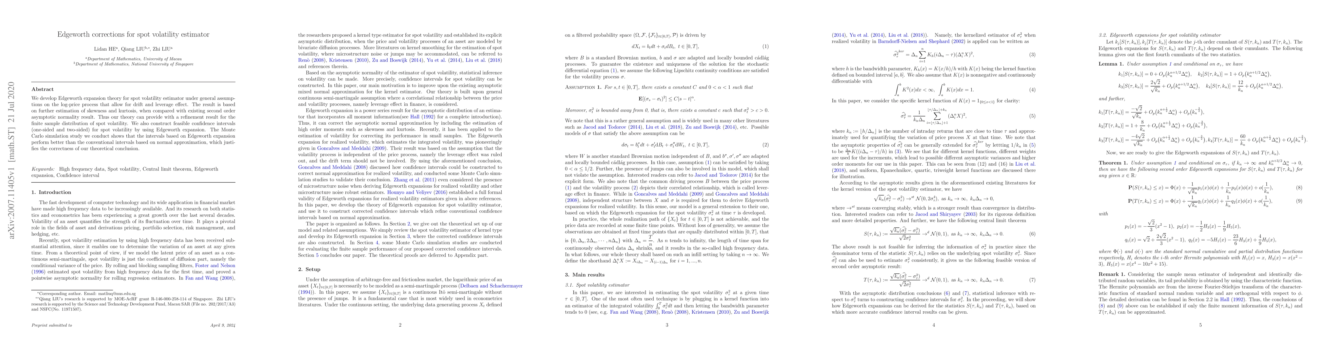 We develop Edgeworth expansion theory for spot volatility estimator under general assumptions on the log-price process that allow for drift and leverage effect. The result is based on further estimation of skewness and kurtosis, when compared with existing second order asymptotic normality result. Thus our theory can provide with a refinement result for the finite sample distribution of spot volatility. We also construct feasible confidence intervals (one-sided and two-sided) for spot volatility by using Edgeworth expansion. The Monte Carlo simulation study we conduct shows that the intervals based on Edgeworth expansion perform better than the conventional intervals based on normal approximation, which justifies the correctness of our theoretical conclusion.