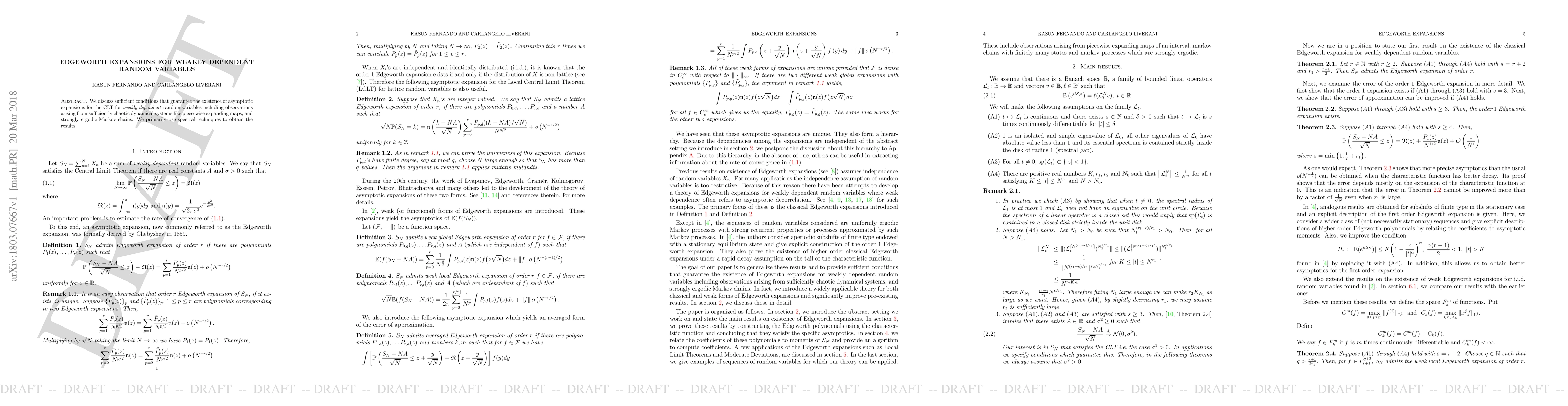 Researchers found sufficient conditions for asymptotic expansions of the Central Limit Theorem for weakly dependent random variables in chaotic systems and Markov chains. These expansions provide insights into the behavior of complex statistical models.