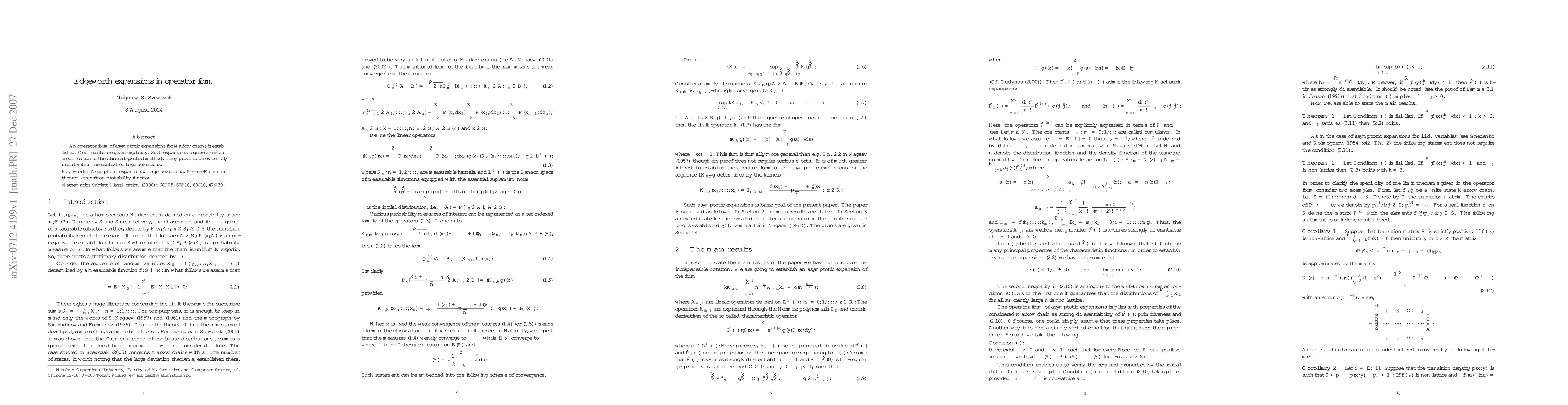 This paper establishes an operator form of asymptotic expansions for Markov chains, providing explicit coefficients that are useful in the context of large deviations.