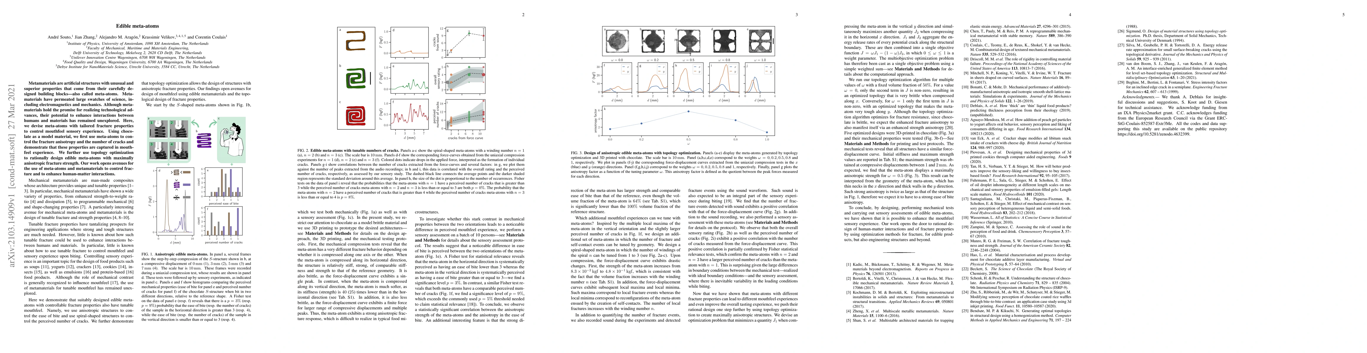 This paper explores the use of meta-atoms in edible materials to control fracture properties, enhancing sensory mouthfeel experiences. By designing chocolate meta-atoms, the researchers demonstrate control over fracture anisotropy and crack formation, paving the way for advanced human-material interactions.