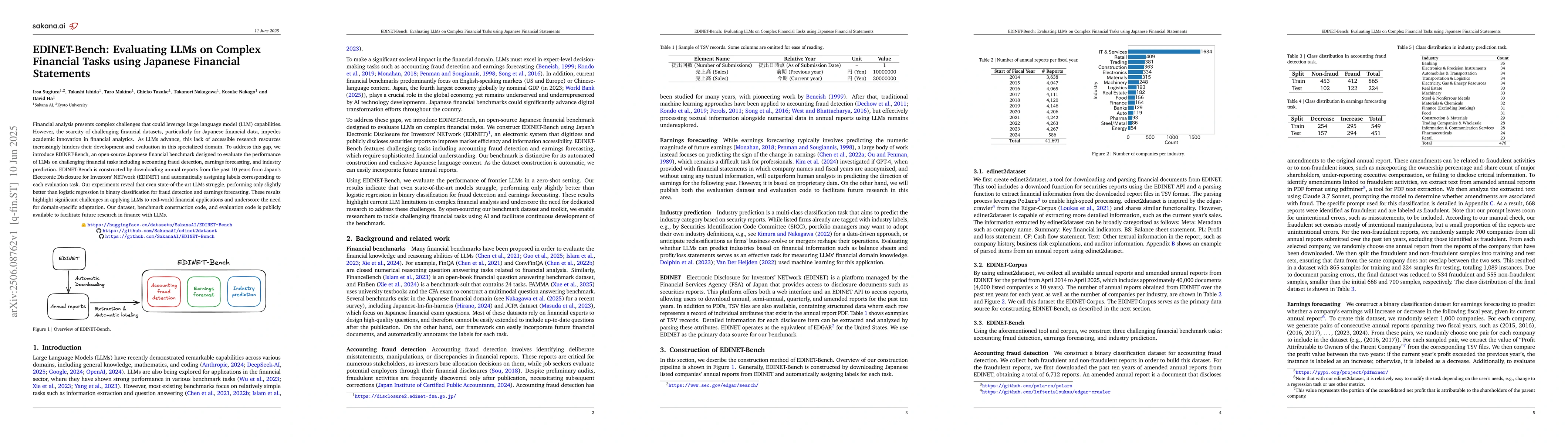 Researchers created EDINET-Bench to evaluate large language models on complex financial tasks using Japanese financial statements, finding that even state-of-the-art LLMs struggle with accuracy.