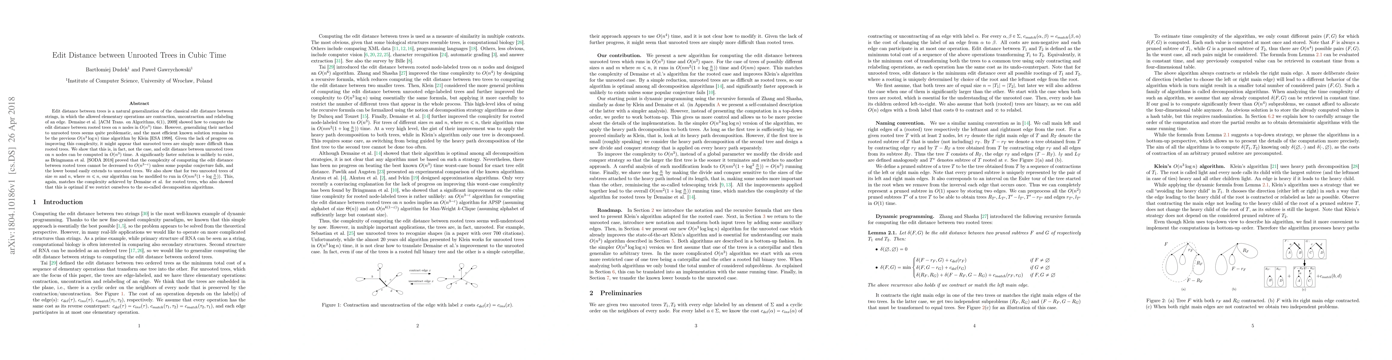 This paper presents an efficient $\mathcal{O}(n^{3})$ algorithm for computing the edit distance between unrooted trees, overcoming the previous $\mathcal{O}(n^{3}\log n)$ time complexity. It also discusses the optimality of this complexity under current conjectures.