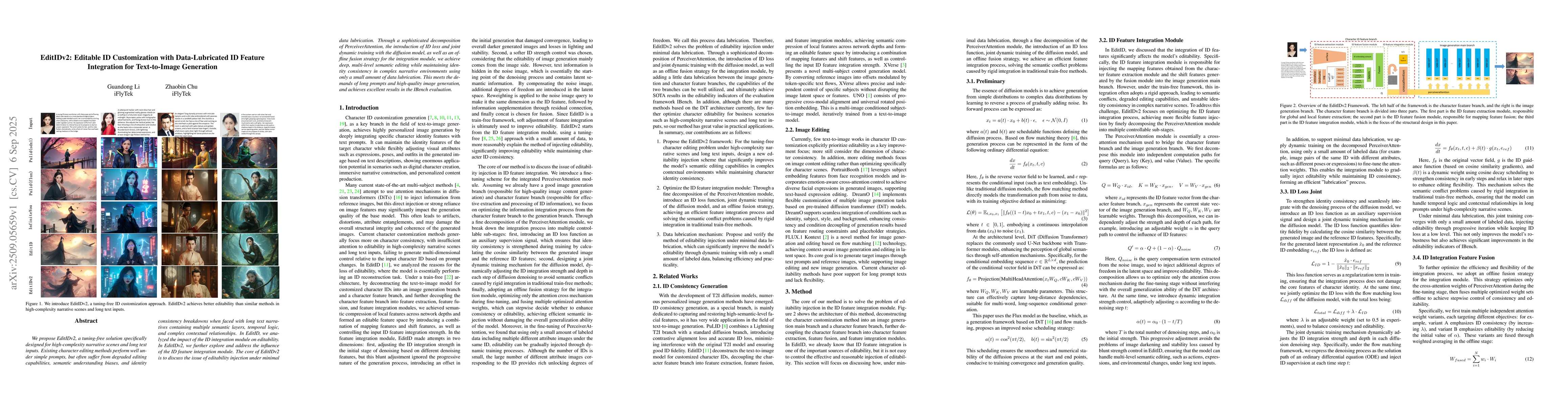We propose EditIDv2, a tuning-free solution specifically designed for high-complexity narrative scenes and long text inputs. Existing character editing methods perform well under simple prompts, but often suffer from degraded editing capabilities, semantic understanding biases, and identity consistency breakdowns when faced with long text narratives containing multiple semantic layers, temporal logic, and complex contextual relationships. In EditID, we analyzed the impact of the ID integration module on editability. In EditIDv2, we further explore and address the influence of the ID feature integration module. The core of EditIDv2 is to discuss the issue of editability injection under minimal data lubrication. Through a sophisticated decomposition of PerceiverAttention, the introduction of ID loss and joint dynamic training with the diffusion model, as well as an offline fusion strategy for the integration module, we achieve deep, multi-level semantic editing while maintaining identity consistency in complex narrative environments using only a small amount of data lubrication. This meets the demands of long prompts and high-quality image generation, and achieves excellent results in the IBench evaluation.