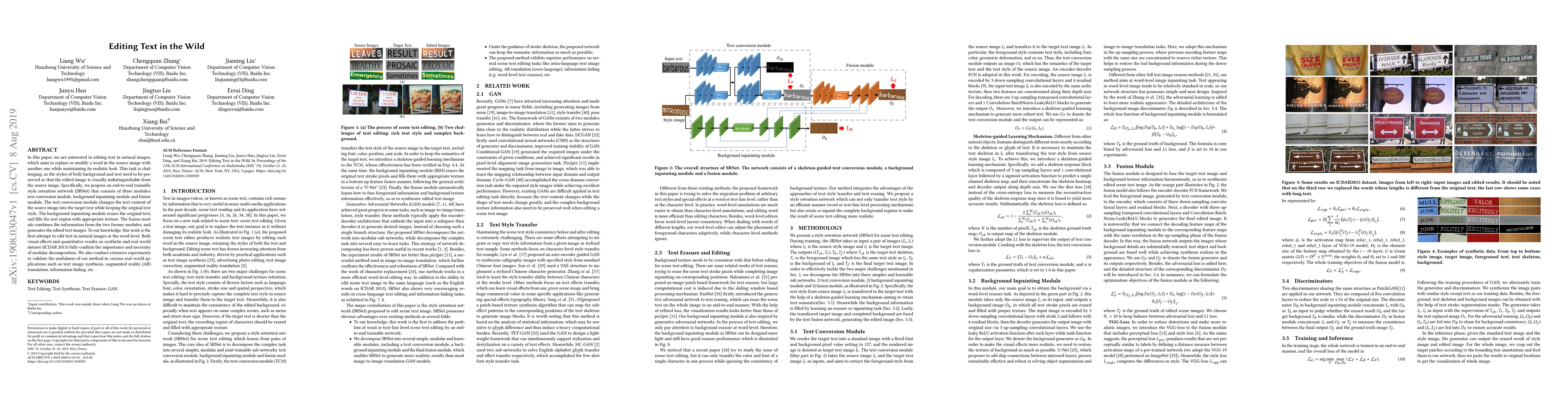 In this paper, we are interested in editing text in natural images, which aims to replace or modify a word in the source image with another one while maintaining its realistic look. This task is challenging, as the styles of both background and text need to be preserved so that the edited image is visually indistinguishable from the source image. Specifically, we propose an end-to-end trainable style retention network (SRNet) that consists of three modules: text conversion module, background inpainting module and fusion module. The text conversion module changes the text content of the source image into the target text while keeping the original text style. The background inpainting module erases the original text, and fills the text region with appropriate texture. The fusion module combines the information from the two former modules, and generates the edited text images. To our knowledge, this work is the first attempt to edit text in natural images at the word level. Both visual effects and quantitative results on synthetic and real-world dataset (ICDAR 2013) fully confirm the importance and necessity of modular decomposition. We also conduct extensive experiments to validate the usefulness of our method in various real-world applications such as text image synthesis, augmented reality (AR) translation, information hiding, etc.