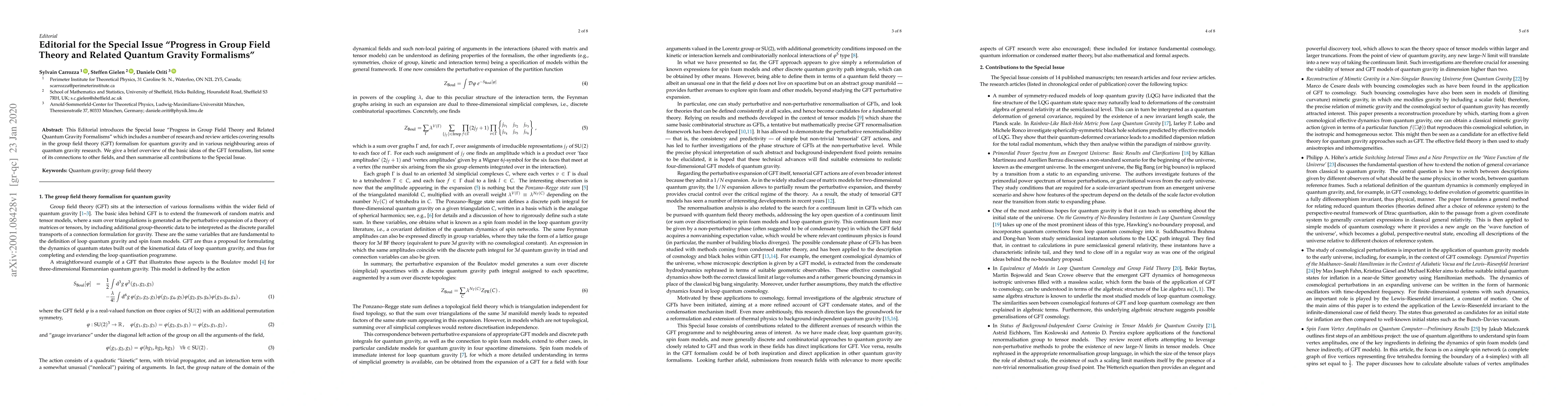 This Editorial introduces a Special Issue on "Progress in Group Field Theory and Related Quantum Gravity Formalisms," summarizing key ideas of the GFT formalism and its connections to other quantum gravity research areas, alongside an overview of the included research and review articles.