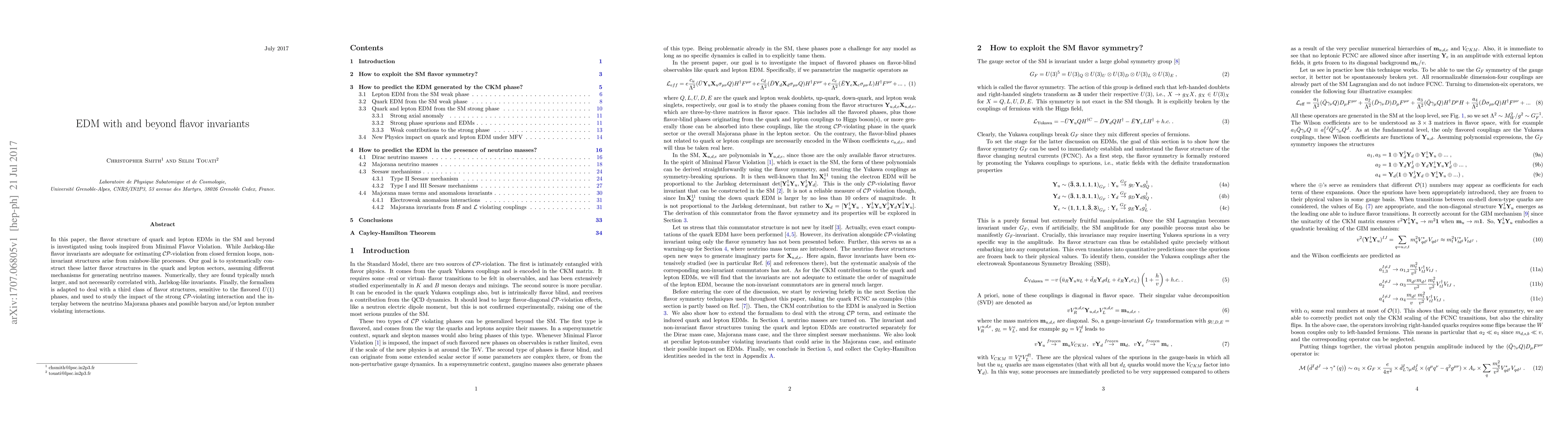 This paper explores quark and lepton EDMs' flavor structure within and beyond the Standard Model, using Minimal Flavor Violation principles. It identifies two types of flavor structures: Jarlskog-like invariants for CP-violation from closed loops, and non-invariant 'rainbow' structures from open loops, typically larger and uncorrelated with invariants. The study also examines a third class of flavor structures sensitive to flavored U(1) phases, analyzing the impact of strong CP-violation and neutrino Majorana phases interplay with baryon/lepton number violating interactions.