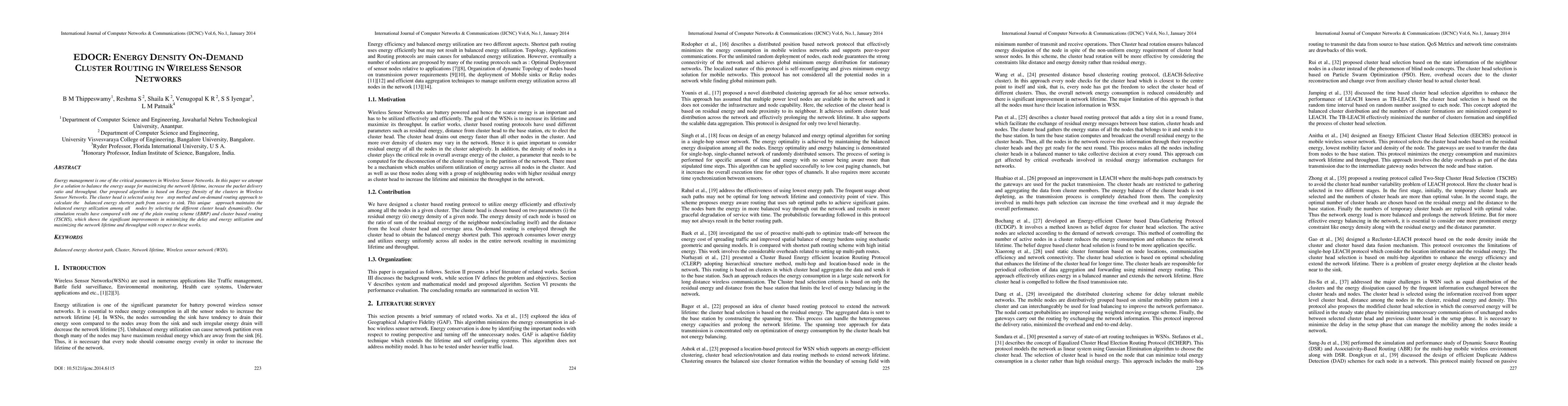 The paper proposes EDOCR, an Energy Density On-demand Cluster Routing algorithm for Wireless Sensor Networks, which aims to maximize network lifetime, packet delivery ratio, and throughput by dynamically selecting cluster heads based on energy density and employing an on-demand routing approach. Simulation results show significant improvements over existing routing schemes in terms of energy efficiency, delay reduction, and network performance.