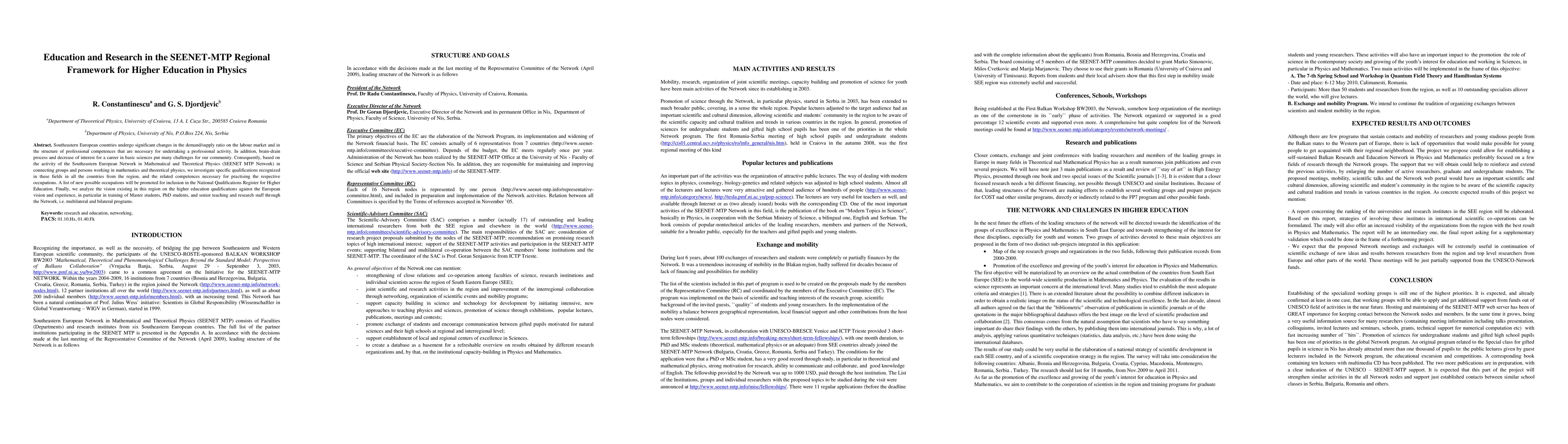 Southeastern European countries undergo significant changes in the demand/supply ratio on the labour market and in the structure of professional competences that are necessary for undertaking a professional activity. In addition, brain-drain process and decrease of interest for a career in basic sciences put many challenges for our community. Consequently, based on the activity of the Southeastern European Network in Mathematical and Theoretical Physics (SEENET MTP Network) in connecting groups and persons working in mathematics and theoretical physics, we investigate specific qualifications recognized in these fields in all the countries from the region, and the related competences necessary for practicing the respective occupations. A list of new possible occupations will be promoted for inclusion in the National Qualifications Register for Higher Education. Finally, we analyze the vision existing in this region on the higher education qualifications against the European vision and experience, in particular in training of Master students, PhD students, and senior teaching and research staff through the Network, i.e. multilateral and bilateral programs.