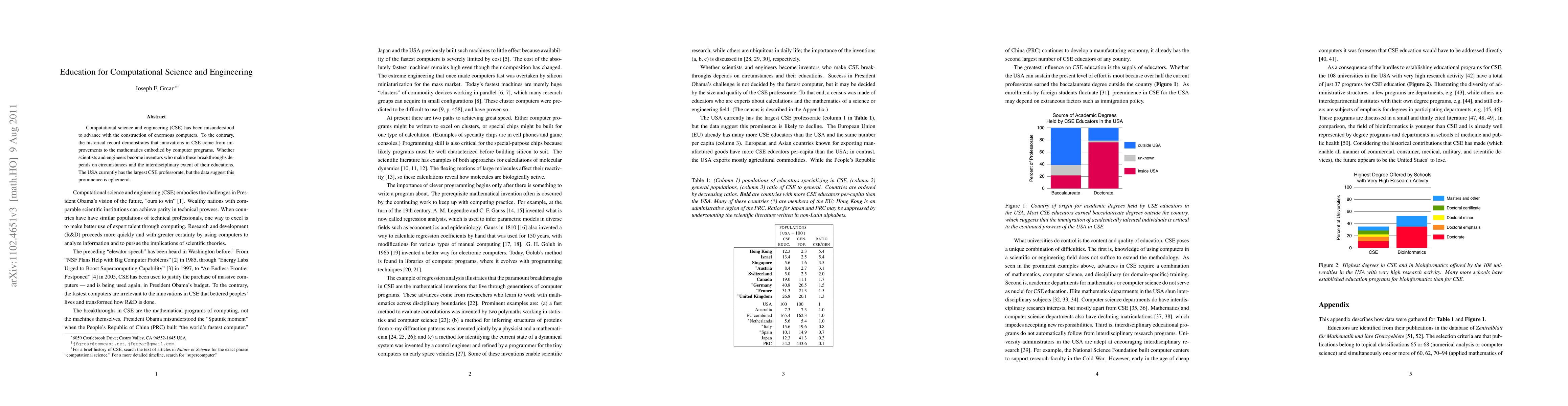 This paper argues that advancements in computational science and engineering (CSE) stem from improvements in the mathematics within computer programs, not just from larger computers. It highlights the importance of interdisciplinary education for scientists and engineers to become innovators in the field, despite the USA's current leading position in CSE professorship, which may be temporary.