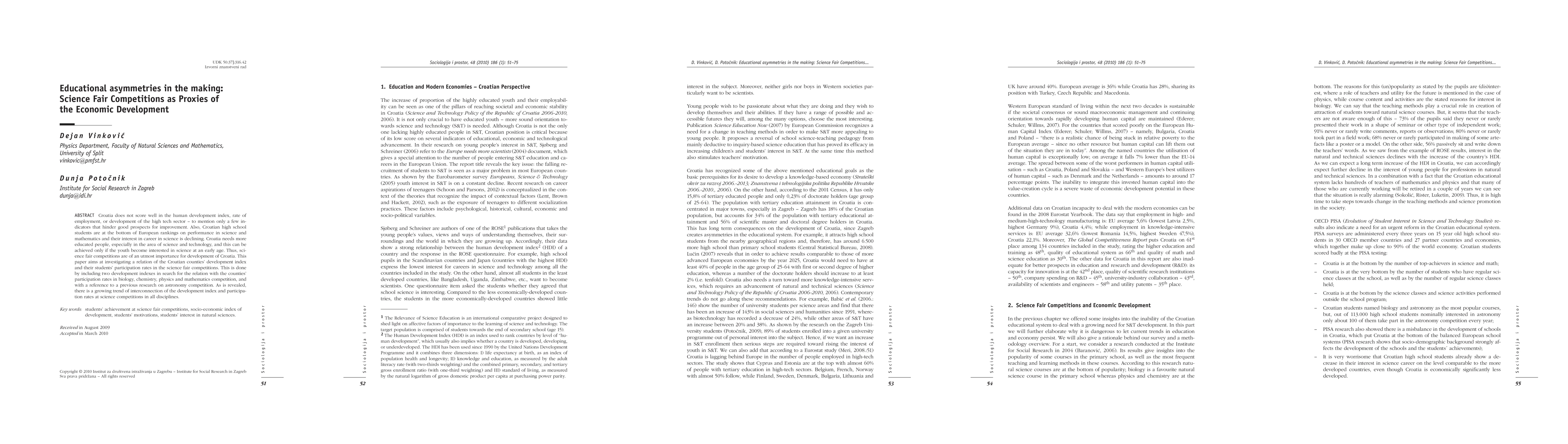 This paper examines the correlation between Croatia's county development index and high school students' participation in science fair competitions across biology, chemistry, physics, and mathematics. It finds a growing trend linking higher economic development with increased student participation in these competitions.