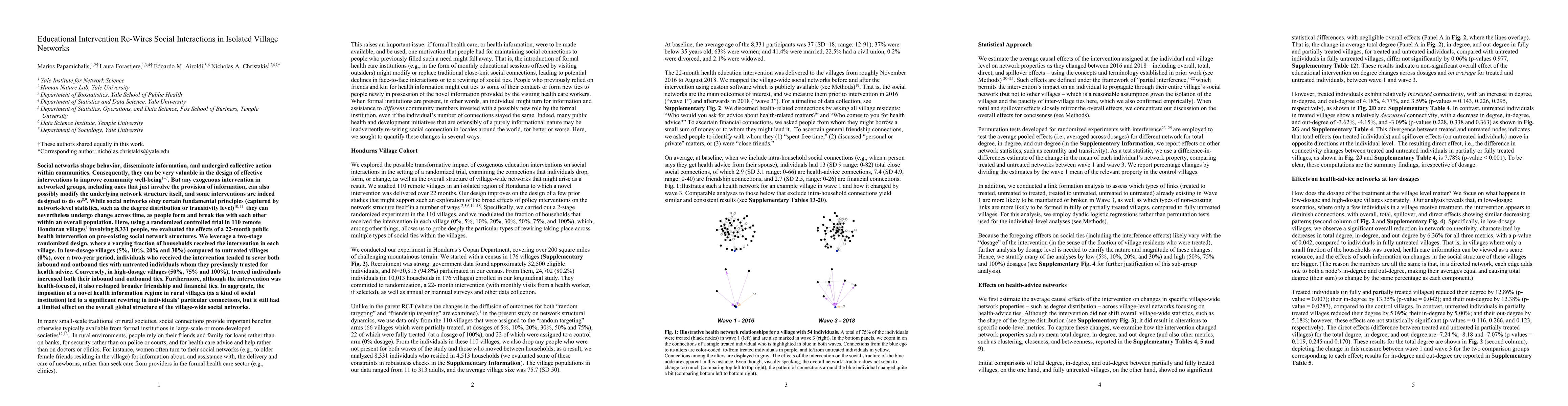 A 22-month public health intervention reshaped social connections in rural Honduran villages, increasing both inbound and outbound ties for treated individuals, but had limited effect on overall network structure.