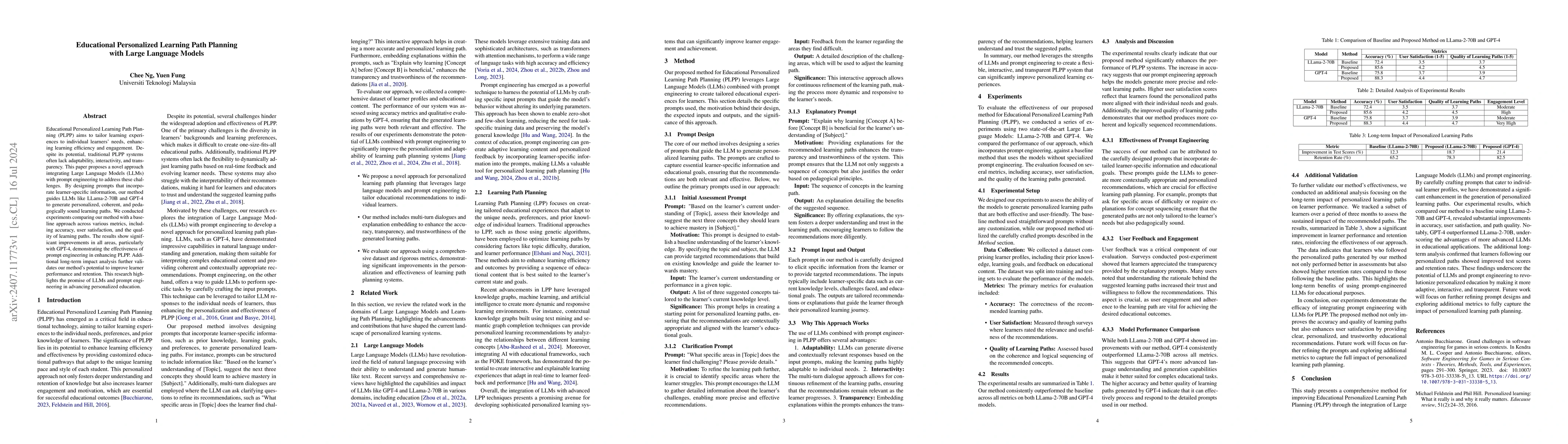 This paper proposes a novel method integrating Large Language Models (LLMs) with prompt engineering for Personalized Learning Path Planning (PLPP), showing significant improvements in adaptability, interactivity, and transparency. Experiments reveal enhanced accuracy, user satisfaction, and learning path quality, especially with LLMs like GPT-4, underscoring the potential of LLMs in advancing personalized education.