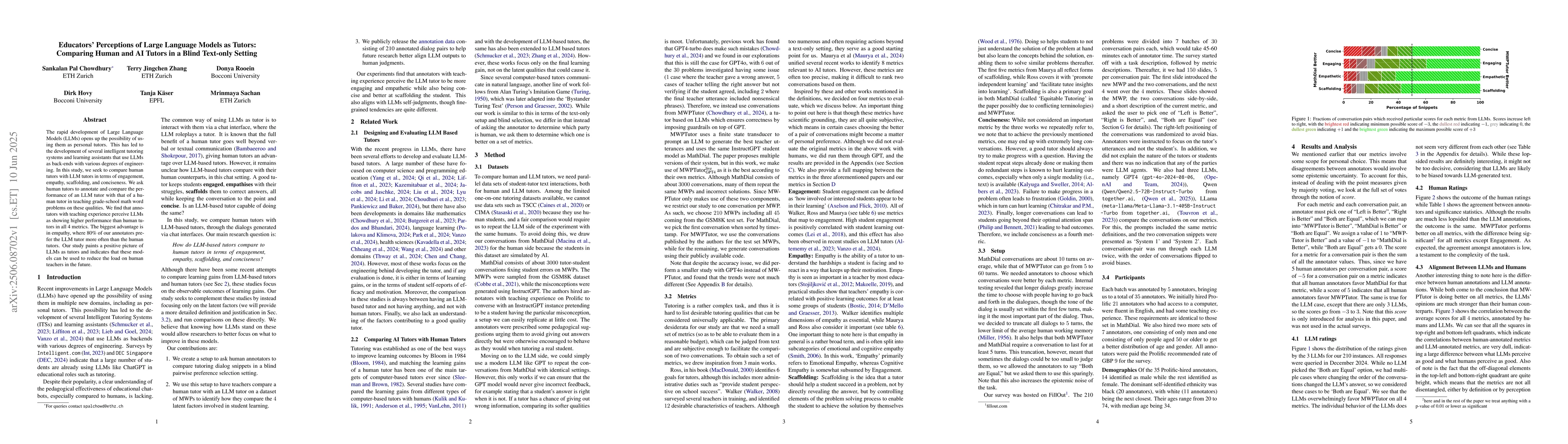 Large Language Models (LLMs) outperform human tutors in engagement, empathy, scaffolding, and conciseness when teaching grade-school math word problems. LLMs show significant advantages, particularly in empathy, suggesting they can help reduce the load on human teachers.