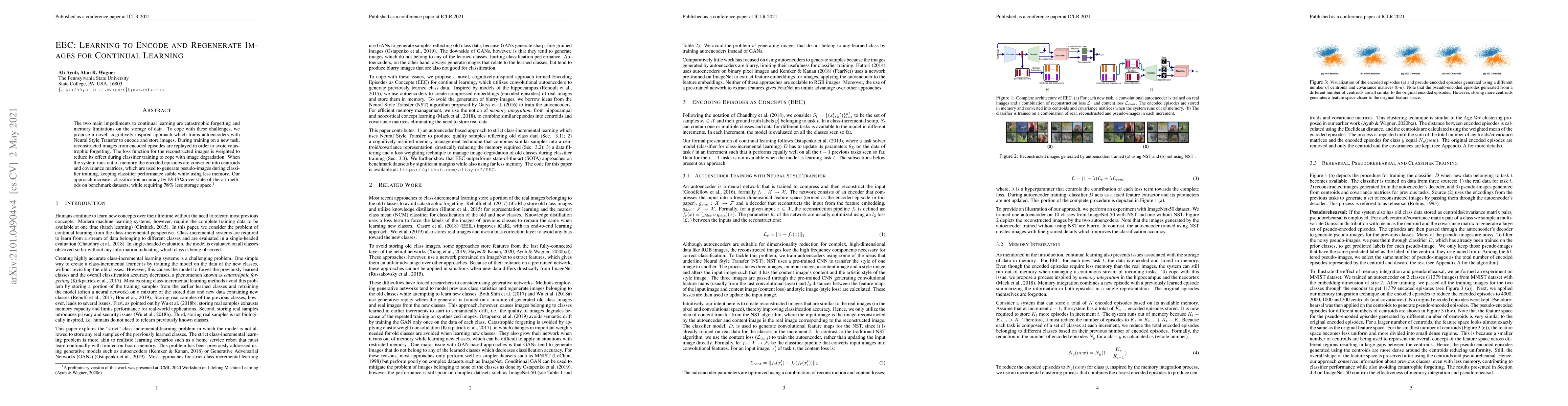 Researchers propose a new method to improve continual learning in image recognition, using autoencoders and Neural Style Transfer to encode and regenerate images, increasing accuracy by 13-17% while reducing storage space by 78%.