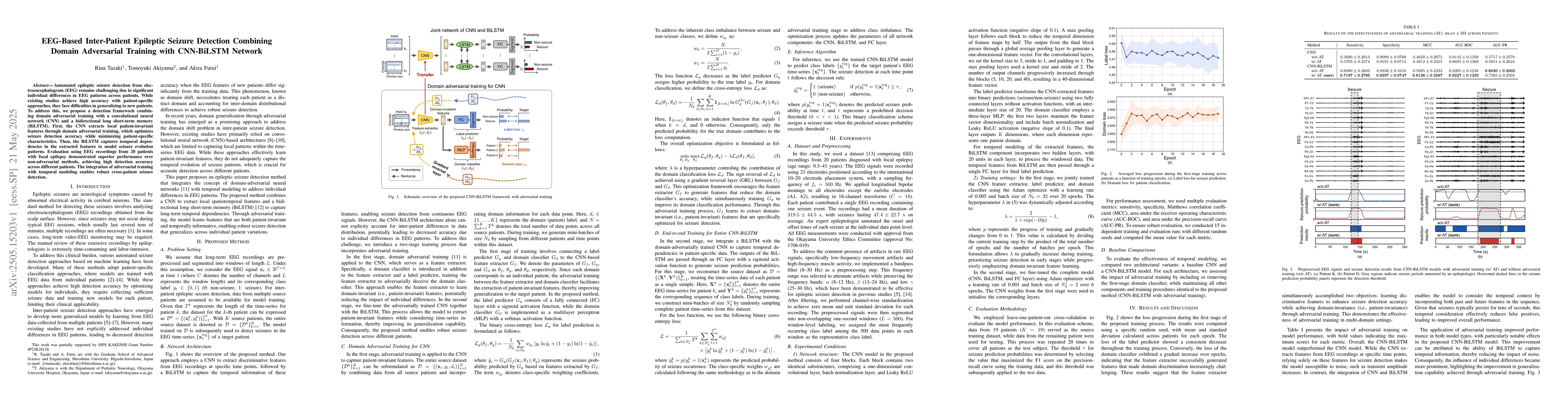 Integration of domain adversarial training with CNN-BiLSTM for patient-invariant feature extraction and temporal modeling in EEG-based seizure detection.