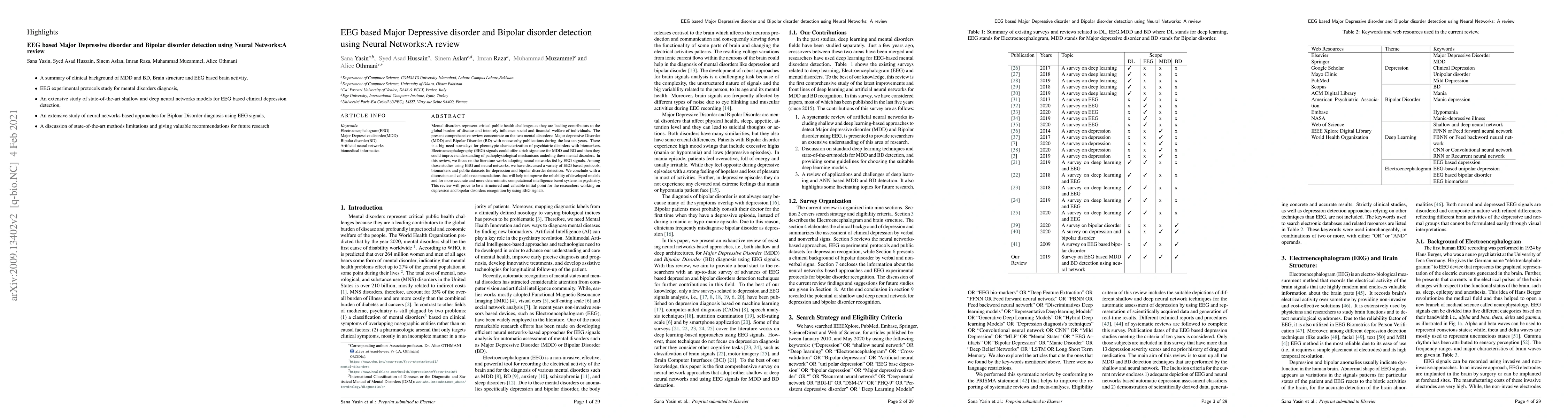 The review offers a comprehensive summary of EEG-based neural network applications for MDD and BD detection, highlighting various methodologies and datasets.