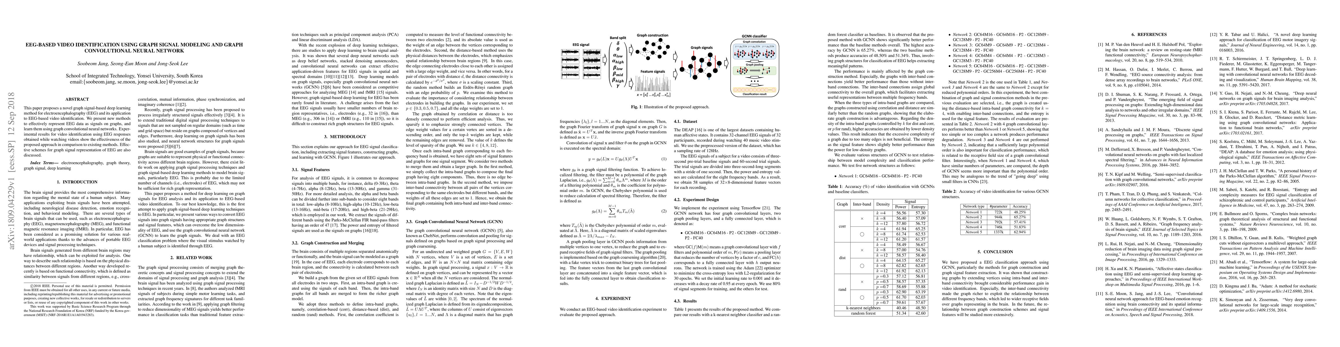 This paper introduces a novel graph signal-based deep learning method for EEG data, employing graph convolutional neural networks for EEG-based video identification. Experimental results demonstrate superior performance compared to existing methods, highlighting effective graph signal representation techniques for EEG.