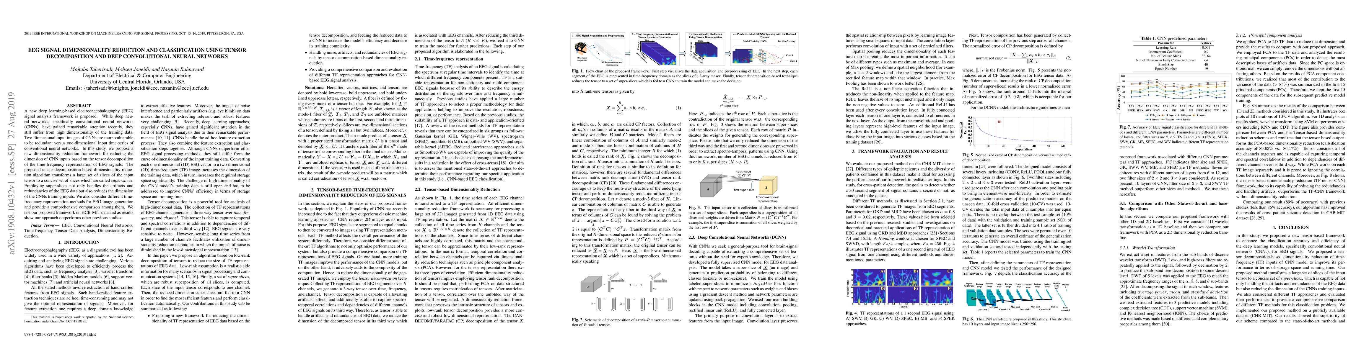 A new deep learning-based EEG signal analysis framework is proposed, combining tensor decomposition for dimensionality reduction and deep convolutional neural networks (CNNs) for classification. The framework transforms EEG signals into time-frequency representations, applies tensor decomposition to reduce dimensionality, and feeds the reduced data into CNNs for efficient model training and decreased computational complexity.