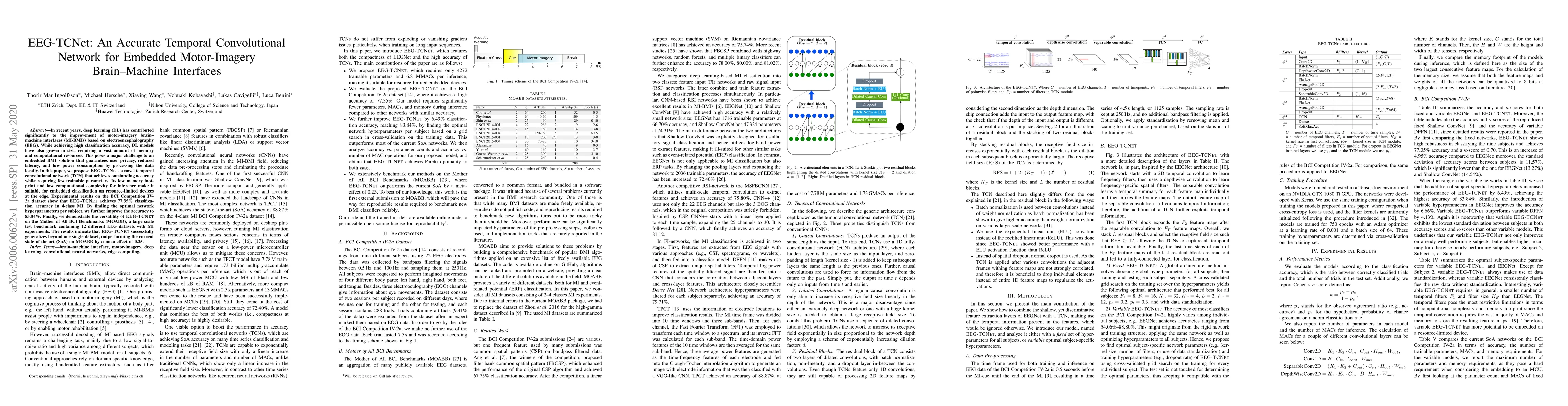 EEG-TCNet is a novel temporal convolutional network designed for embedded motor-imagery brain-machine interfaces, achieving high classification accuracy with minimal trainable parameters, making it suitable for resource-limited edge devices. Experimental results show it outperforms current state-of-the-art methods on large-scale benchmarks.