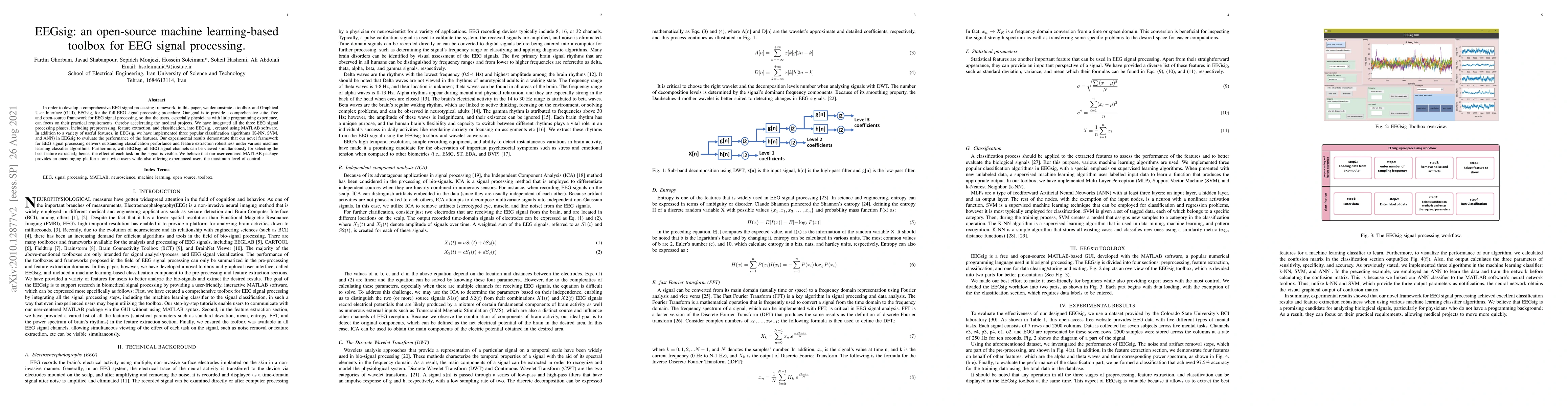 EEGsig is an open-source MATLAB toolbox designed for comprehensive EEG signal processing, including preprocessing, feature extraction, and classification. It features a graphical user interface aimed at facilitating non-programmers, especially physicians, in medical projects, while also offering advanced control for expert users.