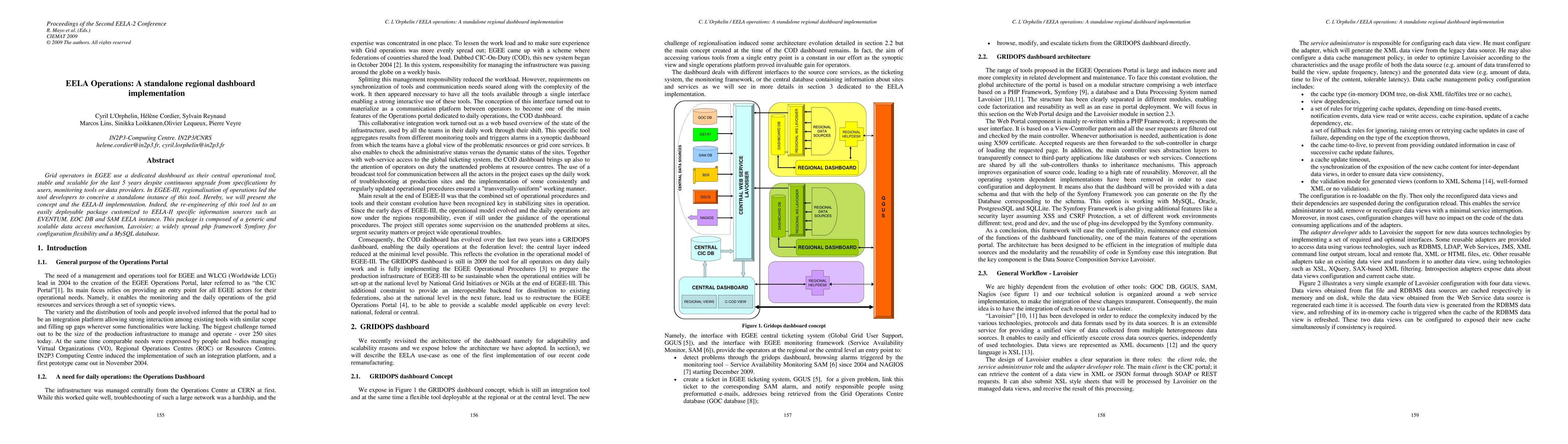 Researchers developed a standalone regional dashboard implementation for grid operators in EGEE, providing a scalable and flexible tool for monitoring operations. The EELA-II package features a generic data access mechanism, Symfony framework, and MySQL database, enabling easy deployment and connection to specific information sources.