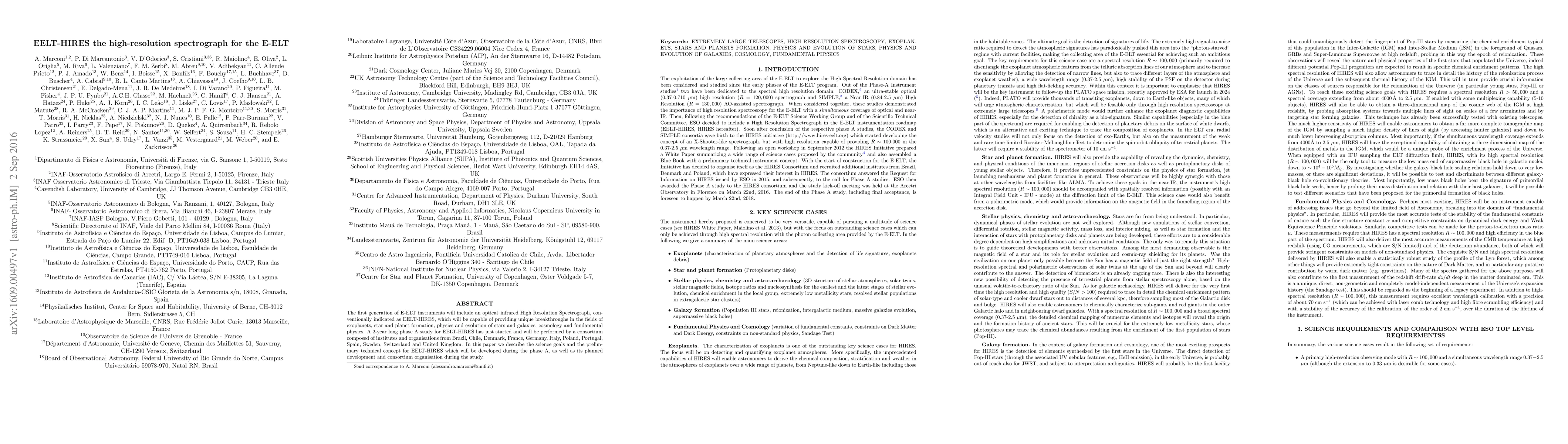This paper outlines the science goals and preliminary technical concept for EELT-HIRES, the high-resolution spectrograph for the E-ELT, aimed at advancing research in exoplanets, star and planet formation, and cosmology. The study, involving a consortium of international institutes, will develop the instrument over a 2-year phase A.
