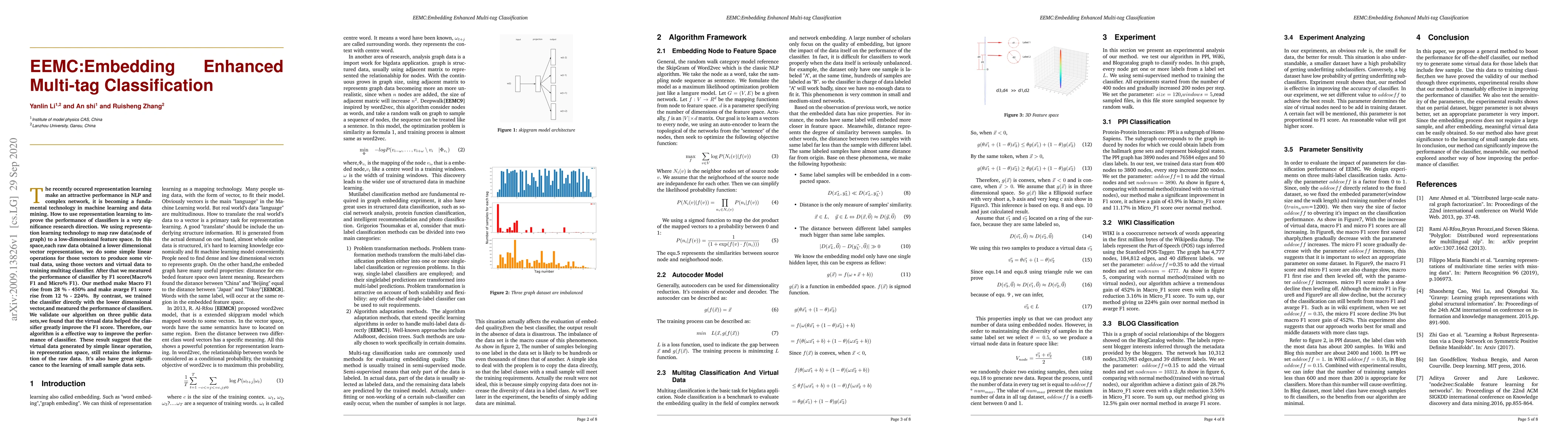 The recently occurred representation learning make an attractive performance in NLP and complex network, it is becoming a fundamental technology in machine learning and data mining. How to use representation learning to improve the performance of classifiers is a very significance research direction. We using representation learning technology to map raw data(node of graph) to a low-dimensional feature space. In this space, each raw data obtained a lower dimensional vector representation, we do some simple linear operations for those vectors to produce some virtual data, using those vectors and virtual data to training multi-tag classifier. After that we measured the performance of classifier by F1 score(Macro% F1 and Micro% F1). Our method make Macro F1 rise from 28 % - 450% and make average F1 score rise from 12 % - 224%. By contrast, we trained the classifier directly with the lower dimensional vector, and measured the performance of classifiers. We validate our algorithm on three public data sets, we found that the virtual data helped the classifier greatly improve the F1 score. Therefore, our algorithm is a effective way to improve the performance of classifier. These result suggest that the virtual data generated by simple linear operation, in representation space, still retains the information of the raw data. It's also have great significance to the learning of small sample data sets.