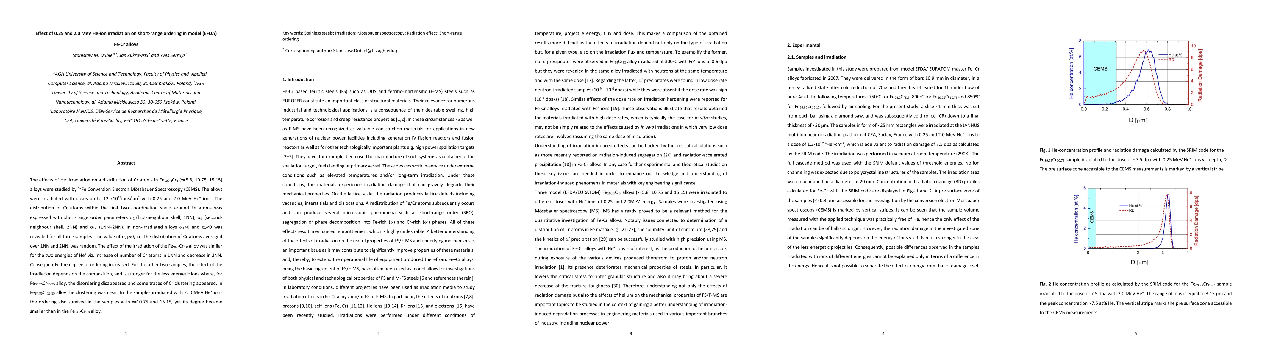 This study investigates the impact of 0.25 and 2.0 MeV He-ion irradiation on short-range ordering in Fe-Cr alloys using conversion electron Mössbauer spectroscopy. The irradiation enhances ordering in Fe5Cr, while in Fe10Cr and Fe15Cr, the effect varies with composition and energy, leading to clustering and reduced disordering.