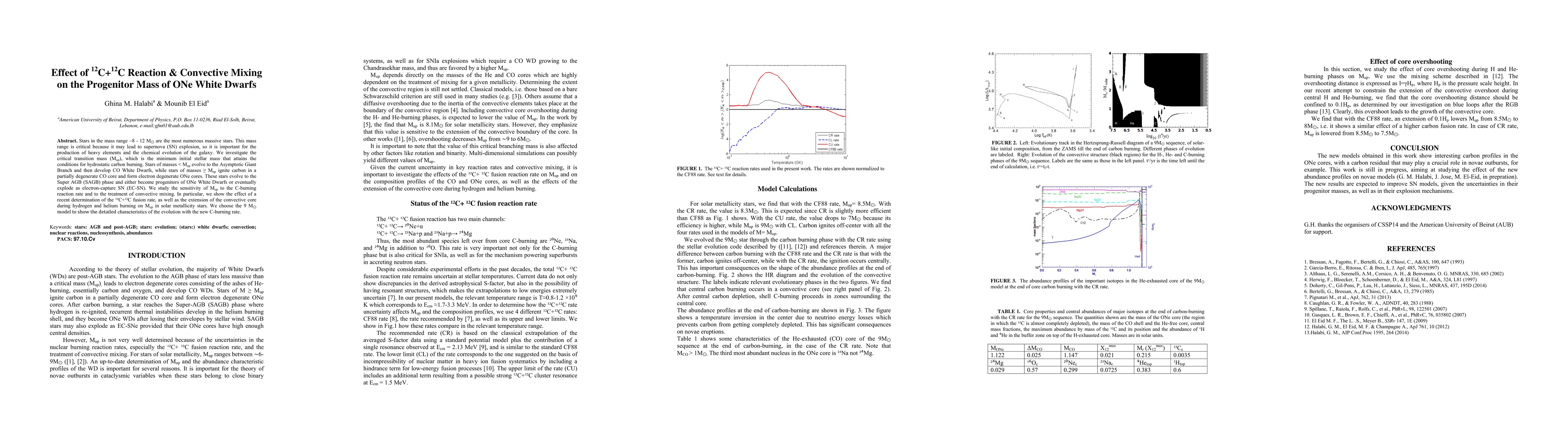 Stars in the mass range ~8 - 12 $M_{\odot }$ are the most numerous massive stars. This mass range is critical because it may lead to supernova (SN) explosion, so it is important for the production of heavy elements and the chemical evolution of the galaxy. We investigate the critical transition mass ($M_{up}$), which is the minimum initial stellar mass that attains the conditions for hydrostatic carbon burning. Stars of masses < $M_{up}$ evolve to the Asymptotic Giant Branch and then develop CO White Dwarfs, while stars of masses $\geqslant $ $M_{up}$ ignite carbon in a partially degenerate CO core and form electron degenerate ONe cores. These stars evolve to the Super AGB (SAGB) phase and either become progenitors of ONe White Dwarfs or eventually explode as electron-capture SN (EC-SN). We study the sensitivity of $M_{up}$ to the C-burning reaction rate and to the treatment of convective mixing. In particular, we show the effect of a recent determination of the $^{12}C+$ $^{12}C$ fusion rate, as well as the extension of the convective core during hydrogen and helium burning on $M_{up}$ in solar metallicity stars. We choose the 9$M_{\odot }$ model to show the detailed characteristics of the evolution with the new C-burning rate.