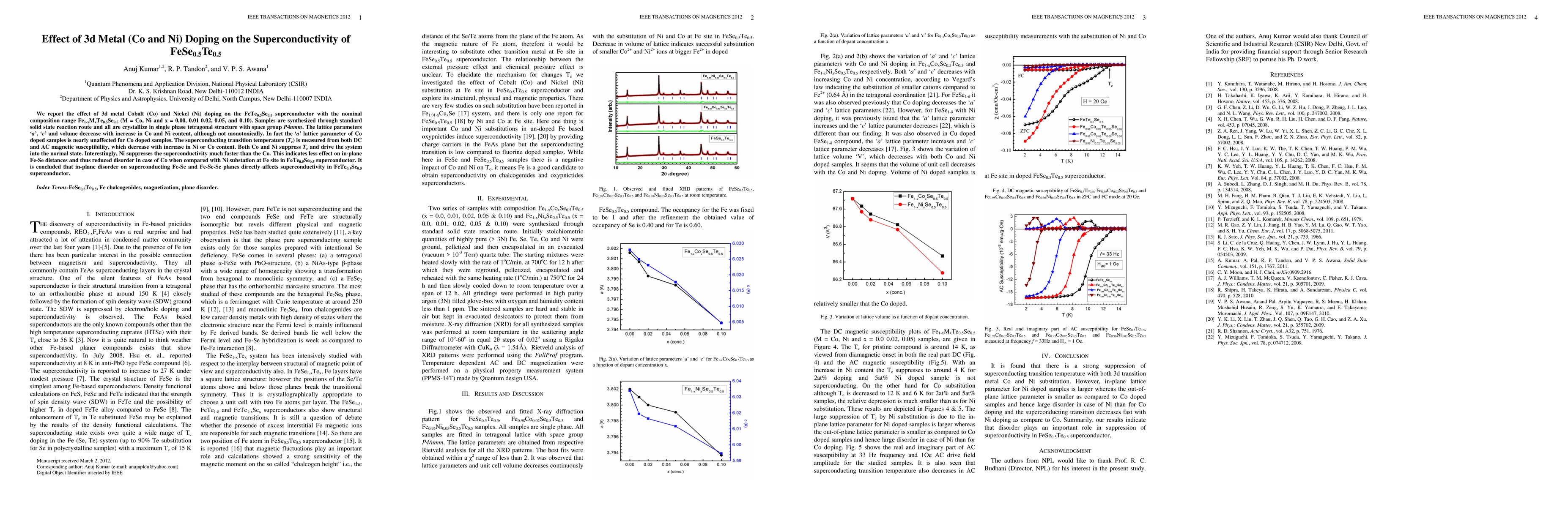 This study investigates the doping effects of 3d metals Co and Ni on the superconductivity of FeSe0.5Te0.5, finding that both suppress the superconducting transition temperature (Tc) with Ni being more effective. The lattice parameters decrease with doping, but Co has a minimal effect on the 'a' lattice parameter.