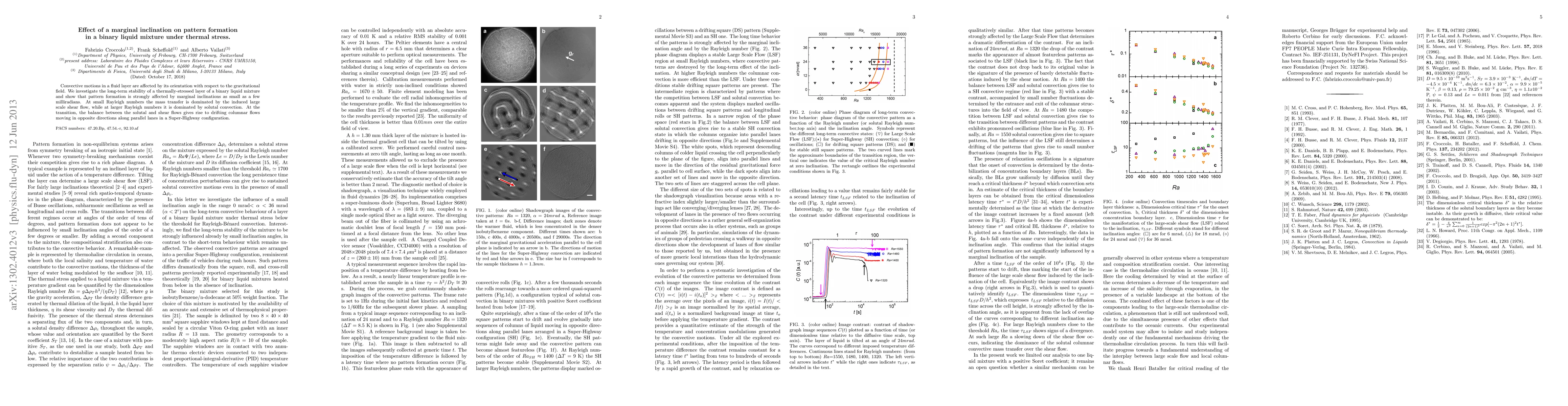 This study examines how slight inclinations impact pattern formation in a thermally-stressed binary liquid mixture, revealing that marginal inclinations as small as a few milliradians significantly affect the mixture's stability. The research highlights a transition between shear-flow-dominated mass transfer at low Rayleigh numbers and solutal convection dominance at higher numbers, leading to unique drifting columnar flows.