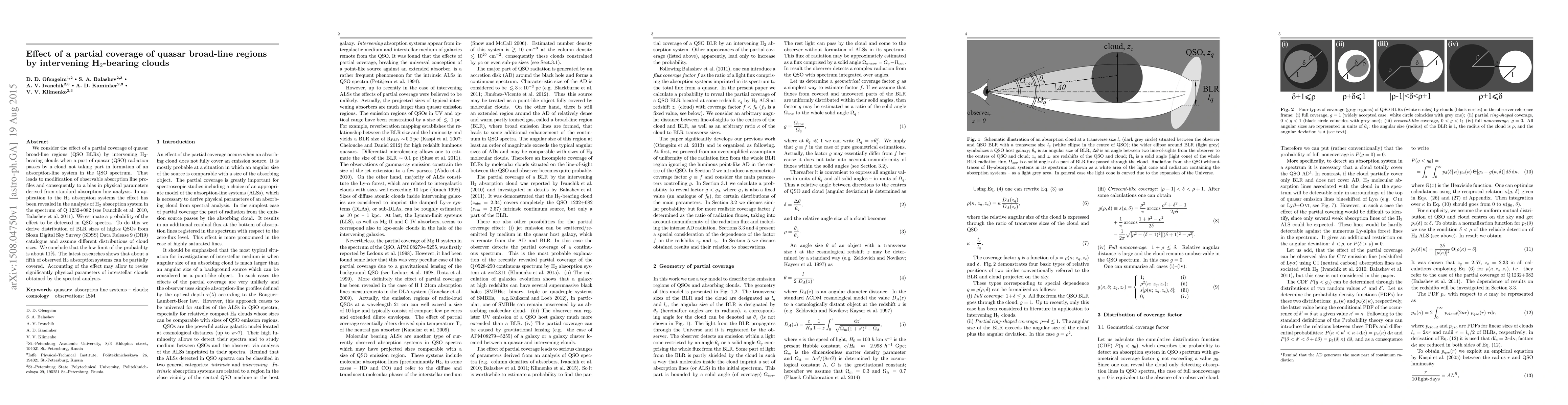 We consider the effect of a partial coverage of quasar broad-line regions (QSO BLRs) by intervening H$_2$-bearing clouds when a part of quasar (QSO) radiation passes by a cloud not taking part in formation of an absorption-line system in the QSO spectrum. That leads to modification of observable absorption line profiles and consequently to a bias in physical parameters derived from standard absorption line analysis. In application to the H$_2$ {absorption} systems the effect has been revealed in the analysis of H$_2$ absorption system in the spectrum of Q~1232+082 (Ivanchik et al. 2010, Balashev et al. 2011). We estimate a probability of the effect to be detected in QSO spectra. To do this we derive distribution of BLR sizes of high-z QSOs from Sloan Digital Sky Survey (SDSS) Data Release 9 (DR9) catalogue and assume different distributions of cloud sizes. We conclude that the low limit of the probability is about $11\%$. The latest researches shows that about a fifth of observed H$_2$ absorption systems can be partially covered. Accounting of the effect may allow to revise significantly physical parameters of interstellar clouds obtained by the spectral analysis.