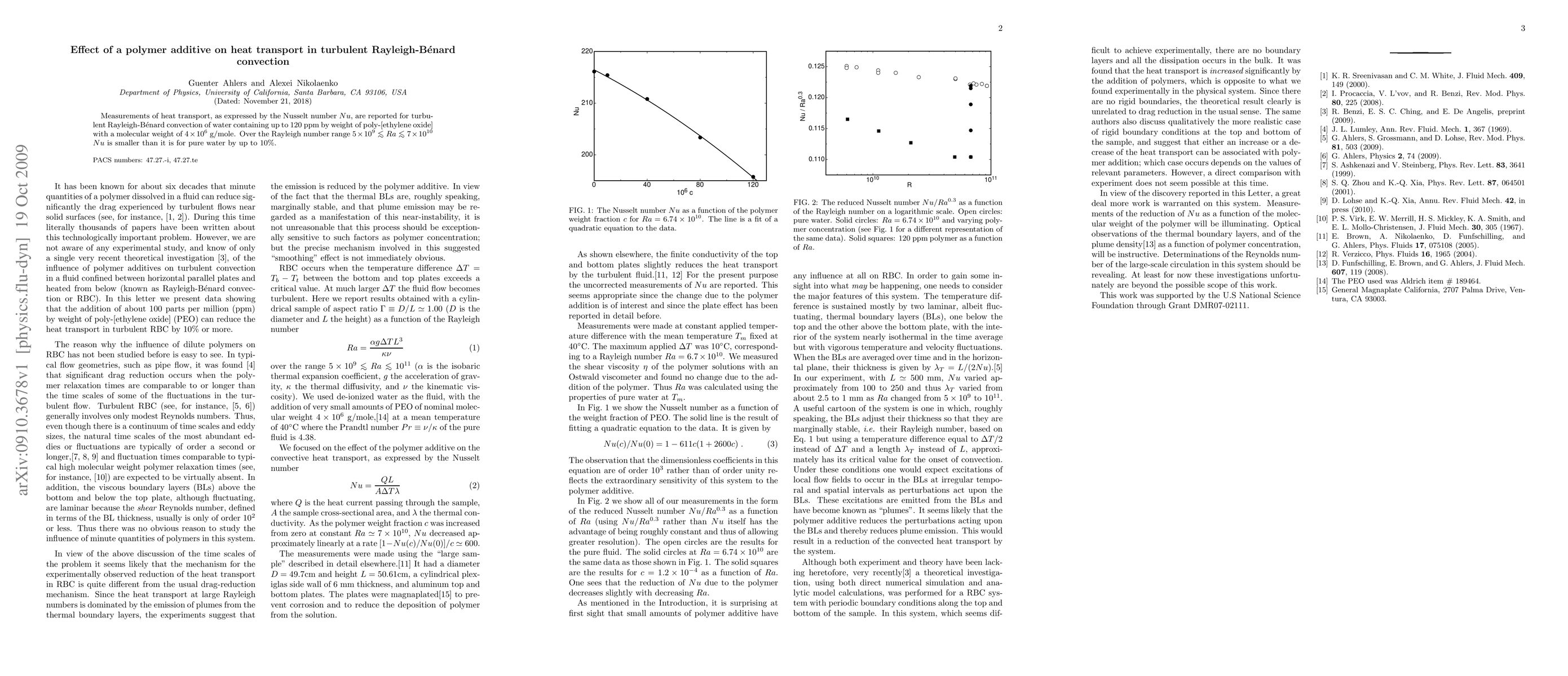 The study presents a new experimental approach to investigate the effect of polymer additives on heat transport in turbulent Rayleigh-Bénard convection.