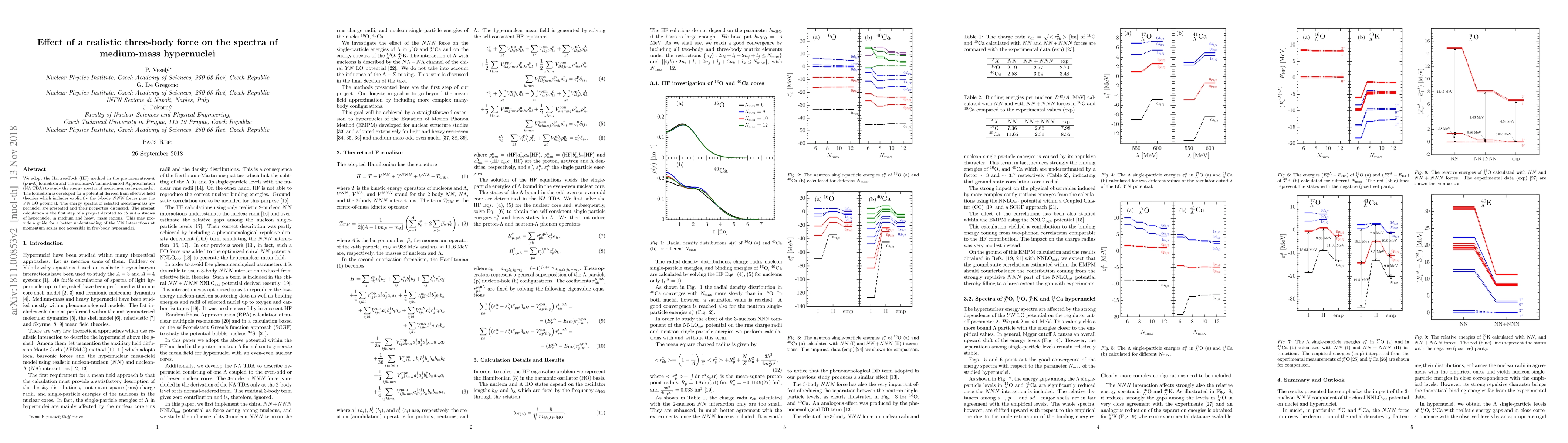 We adopt the Hartree-Fock (HF) method in the proton-neutron-$\Lambda$ (p-n-$\Lambda$) formalism and the nucleon-$\Lambda$ Tamm-Dancoff Approximation (N$\Lambda$ TDA) to study the energy spectra of medium-mass hypernuclei. The formalism is developed for a potential derived from effective field theories which includes explicitly the 3-body $NNN$ forces plus the $YN$ LO potential. The energy spectra of selected medium-mass hypernuclei are presented and their properties discussed. The present calculation is the first step of a project devoted to {\it ab initio} studies of hypernuclei in medium and heavy mass regions. This may provide a guide for a better understanding of the $YN$ interactions at momentum scales not accessible in few-body hypernuclei.