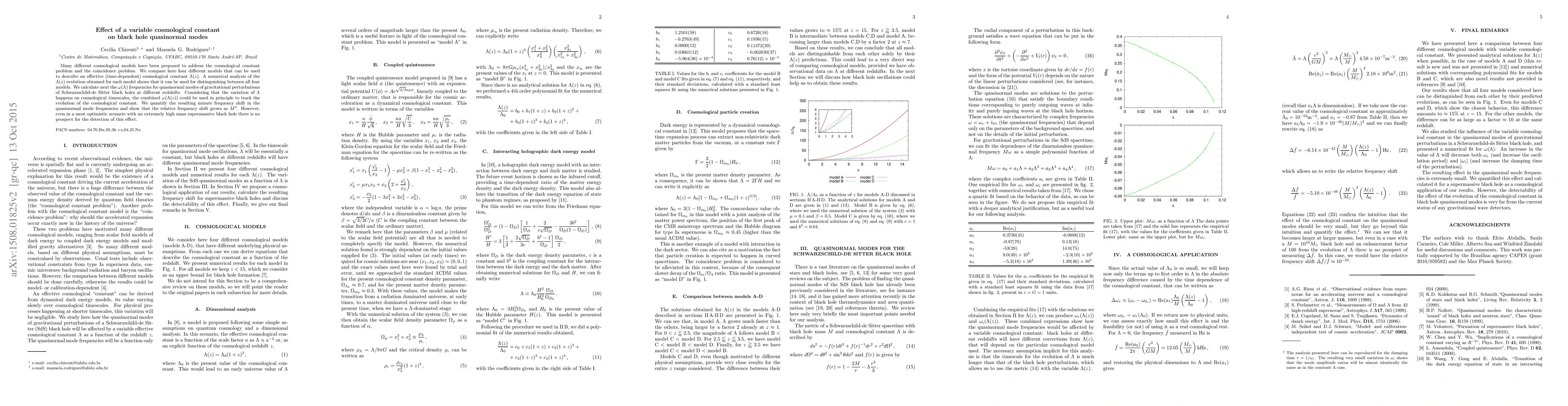 Many different cosmological models have been proposed to address the cosmological constant problem and the coincidence problem. We compare here four different models that can be used to describe an effective (time-dependent) cosmological constant $\Lambda(z)$. A numerical analysis of the $\Lambda(z)$ evolution obtained for each model shows that it can be used for distinguishing between all four models. We calculate next the $\omega(\Lambda)$ frequencies for quasinormal modes of gravitational perturbations of Schwarzschild-de Sitter black holes at different redshifts. Considering that the variation of $\Lambda$ happens on cosmological timescales, the combined $\omega(\Lambda(z))$ could be used in principle to track the evolution of the cosmological constant. We quantify the resulting minute frequency shift in the quasinormal mode frequencies and show that the relative frequency shift grows as $M^2$. However, even in a most optimistic scenario with an extremely high mass supermassive black hole there is no prospect for the detection of this effect.