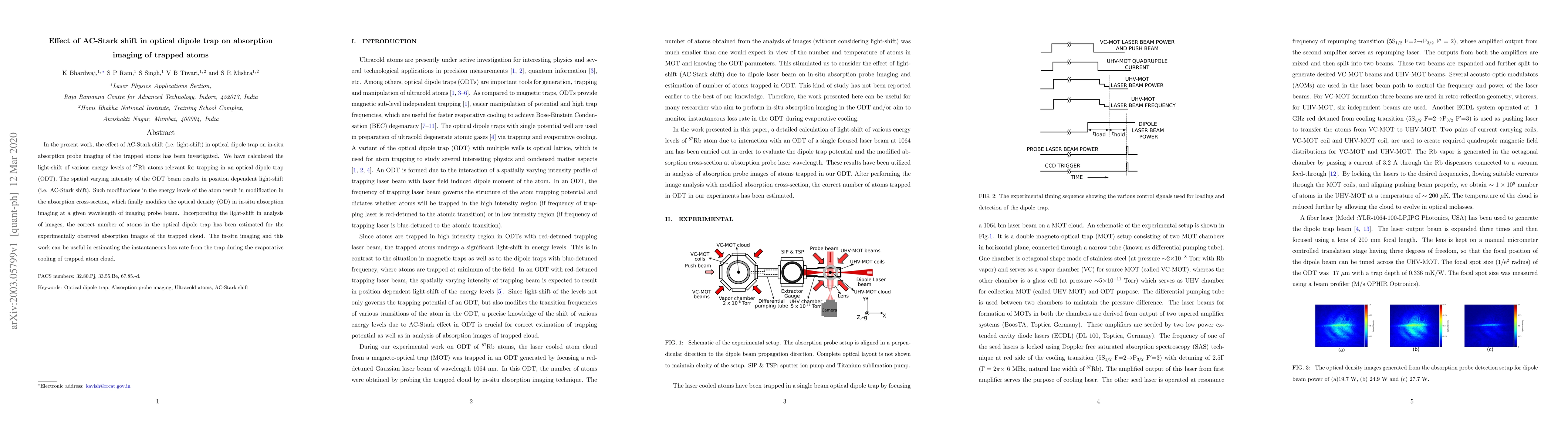 This study investigates the impact of AC-Stark shift in optical dipole traps on the absorption imaging of trapped $^{87}$Rb atoms, revealing how varying light intensity modifies energy levels and absorption cross-section, thereby affecting optical density and enabling accurate atom count estimation.