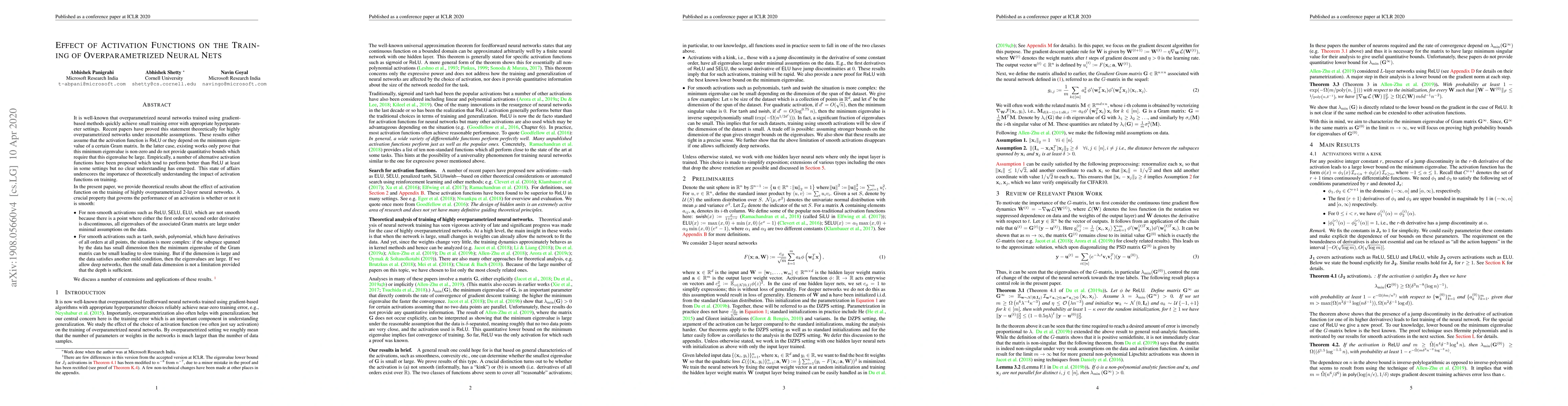 This paper investigates the theoretical impact of different activation functions on the training of highly overparametrized neural networks. It finds that non-smooth activations like ReLU, SELU, and ELU maintain large eigenvalues of the Gram matrix under minimal data assumptions, while smooth activations like tanh, swish, and polynomials exhibit more complex behavior depending on the dimensionality of the data and network depth.