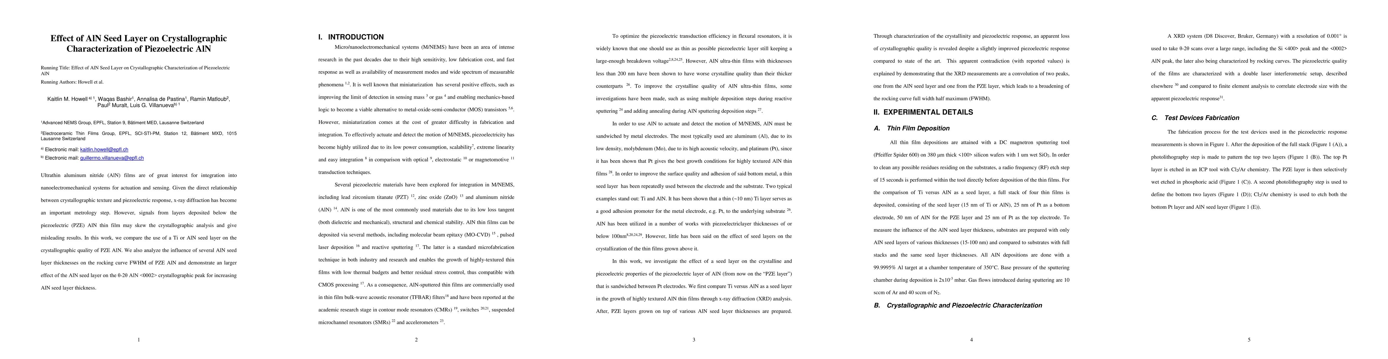 This study investigates the impact of AlN and Ti seed layers on the crystallographic quality of piezoelectric AlN films, using x-ray diffraction. The results show that an AlN seed layer significantly improves the crystallographic texture of the piezoelectric AlN, especially with thicker AlN seed layers, as evidenced by a narrower rocking curve FWHM.