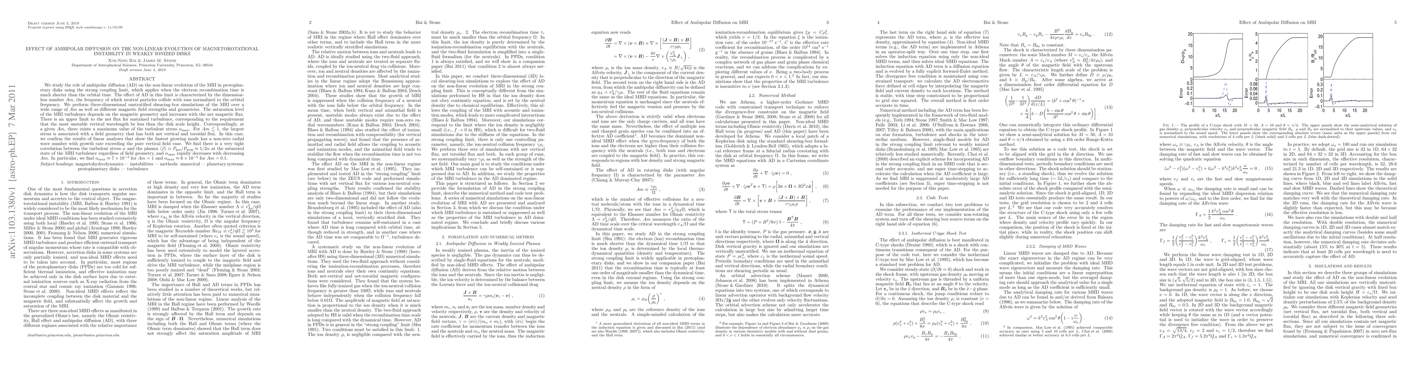 We study the role of ambipolar diffusion (AD) on the non-linear evolution of the MRI in protoplanetary disks using the strong coupling limit, which applies when the electron recombination time is much shorter than the orbital time. The effect of AD in this limit is characterized by the dimensionless number Am, the frequency of which neutral particles collide with ions normalized to the orbital frequency. We perform three-dimensional unstratified shearing-box simulations of the MRI over a wide range of Am as well as different magnetic field strengths and geometries. The saturation level of the MRI turbulence depends on the magnetic geometry and increases with the net magnetic flux. There is an upper limit to the net flux for sustained turbulence, corresponding to the requirement that the most unstable vertical wavelength be less than the disk scale height. Correspondingly, at a given Am, there exists a maximum value of the turbulent stress alpha_max. For Am<1, the largest stress is associated with a field geometry that has both net vertical and toroidal flux. In this case, we confirm the results of linear analyses that show the fastest growing mode has a non-zero radial wave number with growth rate exceeding the pure vertical field case. We find there is a very tight correlation between the turbulent stress (alpha) and the plasma beta=P_gas/P_mag~1/(2alpha) at the saturated state of the MRI turbulence regardless of field geometry, and alpha_max rapidly decreases with decreasing Am. In particular, we quote alpha_max~0.007 for Am=1 and alpha_max~0.0006 for Am=0.1.
