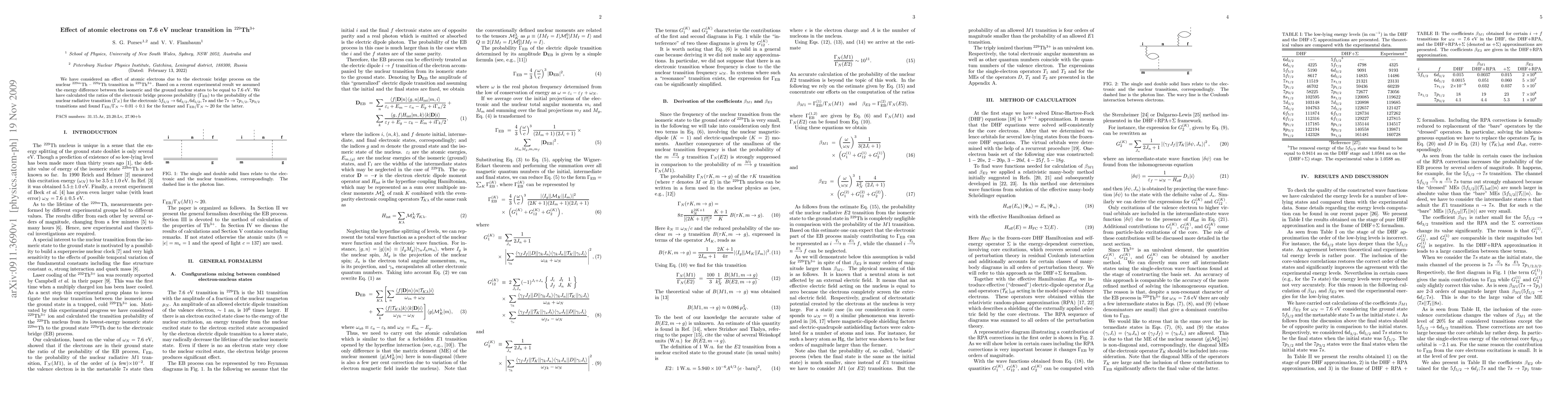 We have considered an effect of atomic electrons due to the electronic bridge process on the nuclear $^{229m}$Th -- $^{229g}$Th transition in ^{229}$Th$^{3+}$. Based on a recent experimental result we assumed the energy difference between the isomeric and the ground nuclear states to be equal to 7.6 eV. We have calculated the ratios of the electronic bridge process probability Gamma_EB to the probability of the nuclear radiative transition (Gamma_N) for the electronic 5f_5/2 --> 6d_3/2,6d_5/2,7s and the 7s --> 7p_1/2,7p_3/2 transitions and found Gamma_EB/Gamma_N ~ 0.01-0.1 for the former and Gamma_EB/Gamma_N ~ 20 for the latter.