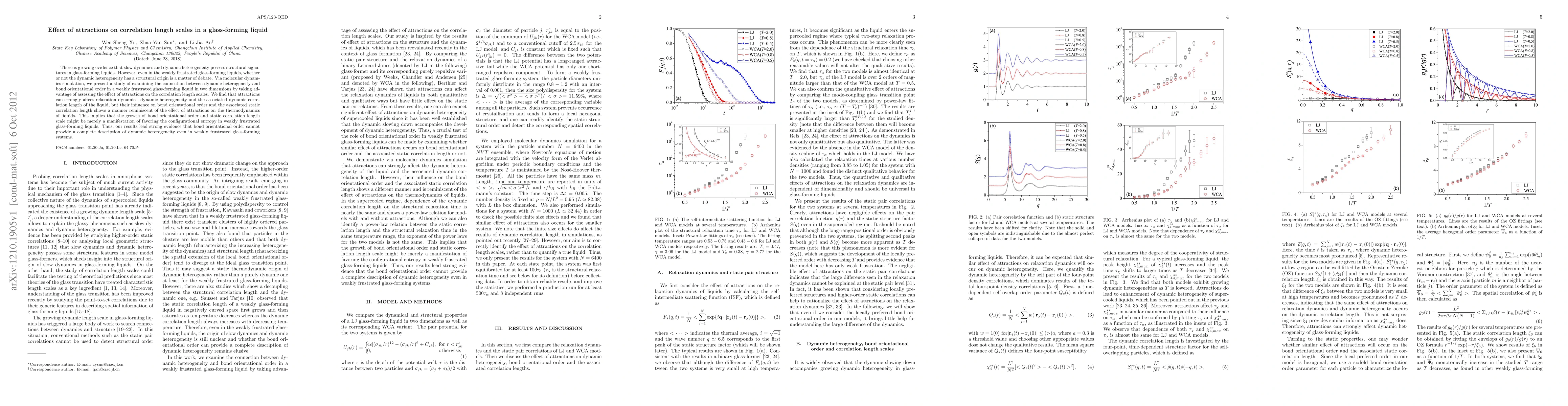 This study uses molecular dynamics simulations to explore the relationship between dynamic heterogeneity and bond orientational order in a two-dimensional glass-forming liquid, finding that attractions influence relaxation dynamics and dynamic correlation length but not bond orientational order. The results suggest that bond orientational order does not fully describe dynamic heterogeneity in weakly frustrated systems.