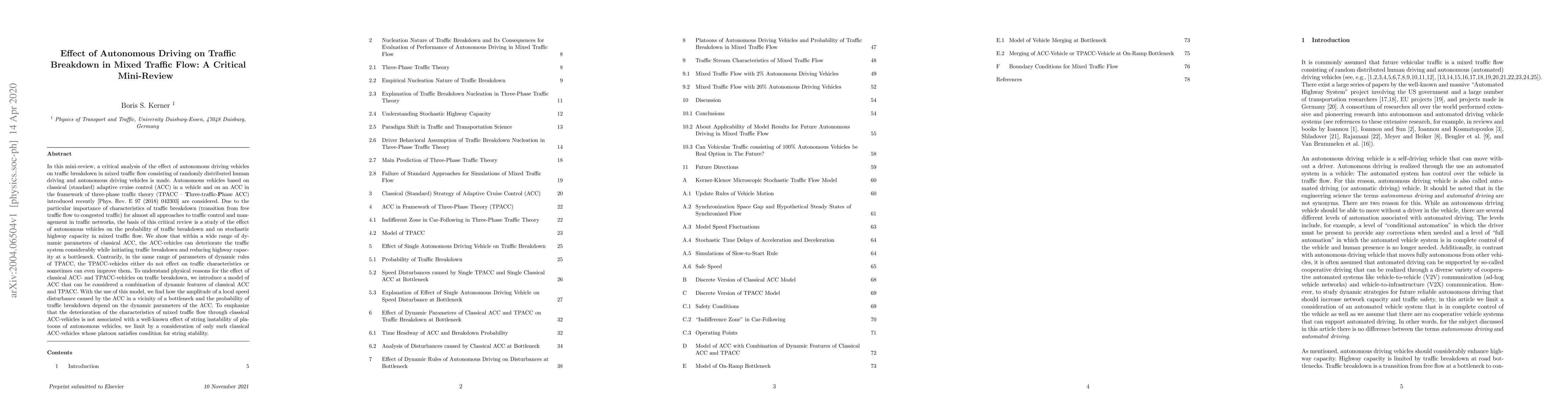 This paper critically examines how autonomous driving vehicles, specifically classical adaptive cruise control (ACC) and ACC based on three-phase traffic theory (TPACC), affect traffic breakdown in mixed traffic flow. It finds that classical ACC can initiate traffic breakdown and reduce highway capacity, whereas TPACC does not, suggesting different dynamic parameter impacts.