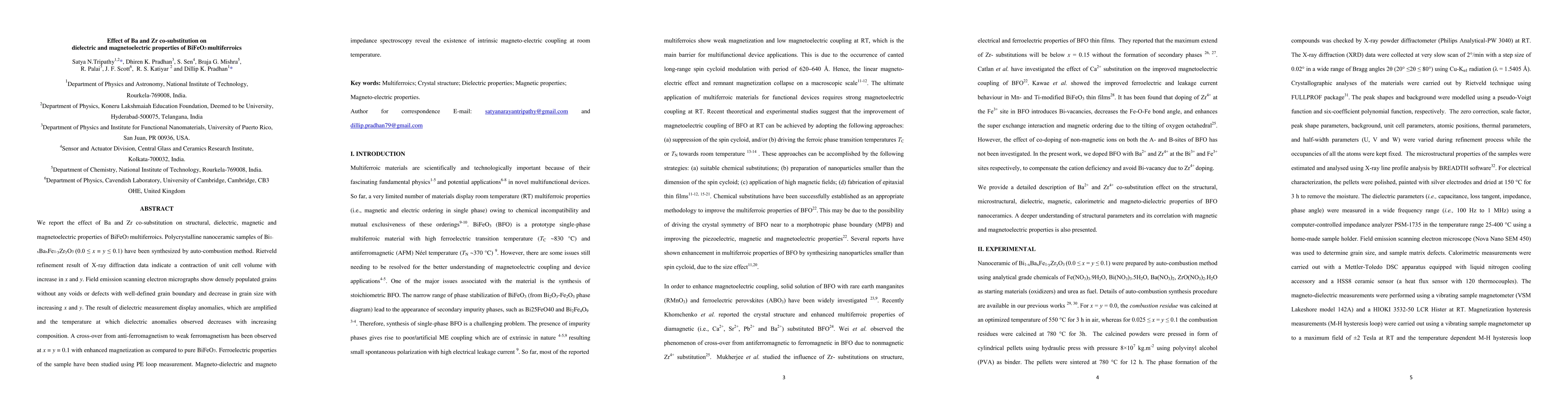 Researchers found that substituting barium and zirconium into BiFeO3 multiferroics enhances magnetization and introduces intrinsic magneto-electric coupling at room temperature.