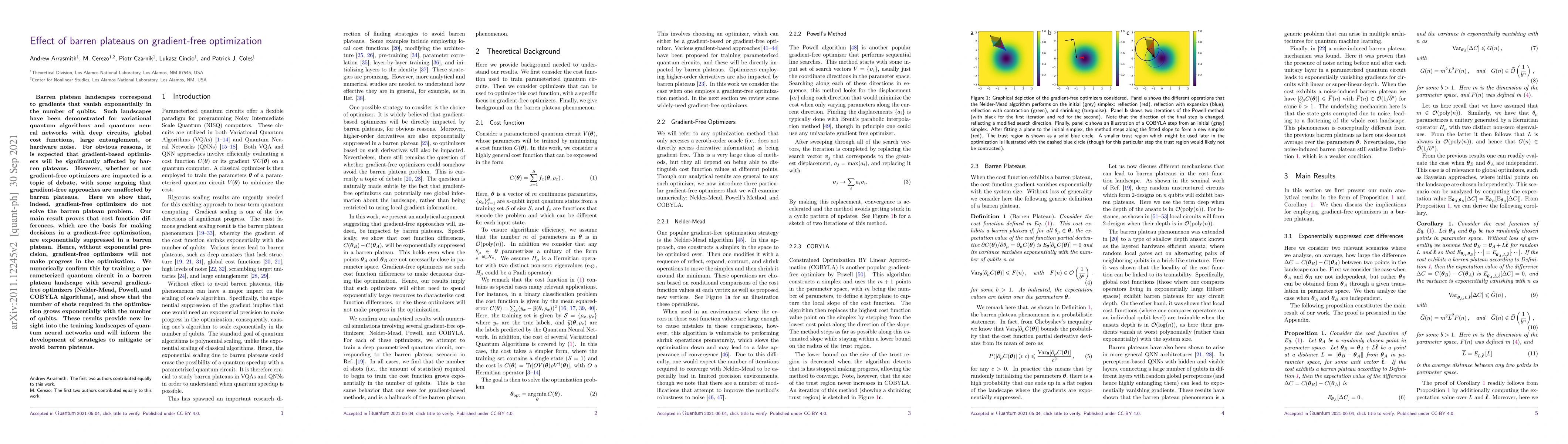 This paper demonstrates that gradient-free optimization methods, such as Nelder-Mead, Powell, and COBYLA, are not immune to the challenges posed by barren plateaus in quantum optimization, where gradient-based methods struggle. The study proves that cost function differences are exponentially suppressed in such plateaus, leading to exponential growth in the number of required shots for optimization with gradient-free methods.