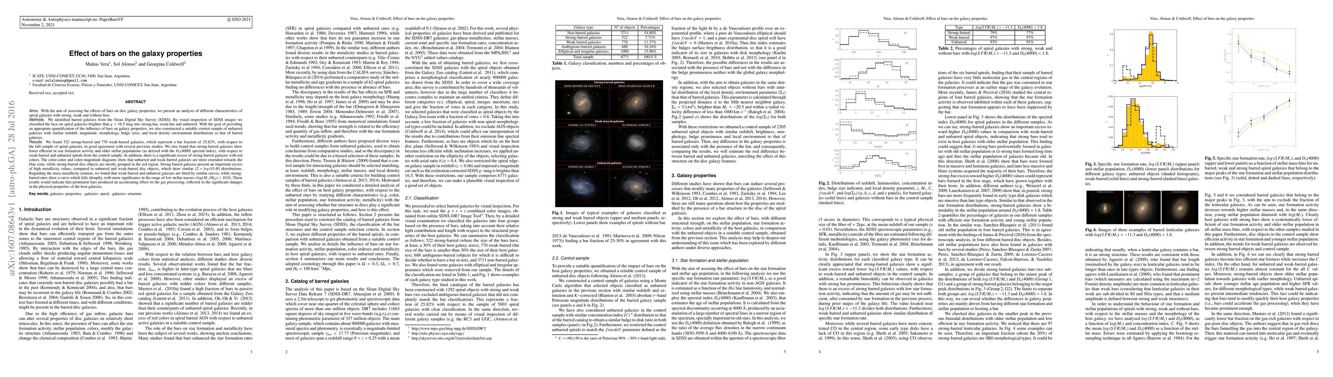 Aims: With the aim of assessing the effects of bars on disc galaxy properties, we present an analysis of different characteristics of spiral galaxies with strong, weak and without bars. Method: We identified barred galaxies from the Sloan Digital Sky Survey. By visual inspection, we classified the face-on spiral galaxies brighter than g<16.5 mag into strong-bar, weak-bar and unbarred. In order to provide an appropiate quantification of the influence of bars on galaxy properties, we also constructed a suitable control sample of unbarred galaxies with similar redshift, magnitude, morphology, bulge sizes, and local density environment distributions to that of barred galaxies. Results: We found 522 strong-barred and 770 weak-barred galaxies, representing a 25.82% of the full sample of spiral galaxies, in good agreement with previous studies. We also found that strong-barred galaxies show less efficient star formation activity and older stellar populations compared to weak-barred and unbarred spirals from the control sample. In addition, there is a significant excess of strong barred galaxies with red colors. The color-color and color-magnitude diagrams show that unbarred and weak-barred galaxies are more extended towards the blue zone, while strong-barred objects are mostly grouped in the red region. Strong-barred galaxies present an important excess of high metallicity values, compared to the other types, showing similar 12+log(O/H) distributions. Regarding the mass-metallicity relation, we found that weak-barred and unbarred galaxies are fitted by similar curves, while strong-barred ones show a curve which falls abruptly, with more significance in the range of low stellar masses (log[Mstar/Msun] < 10.0). These results would indicate that prominent bars produced an accelerating effect on the gas processing, reflected in the significant changes in the physical properties of their host.